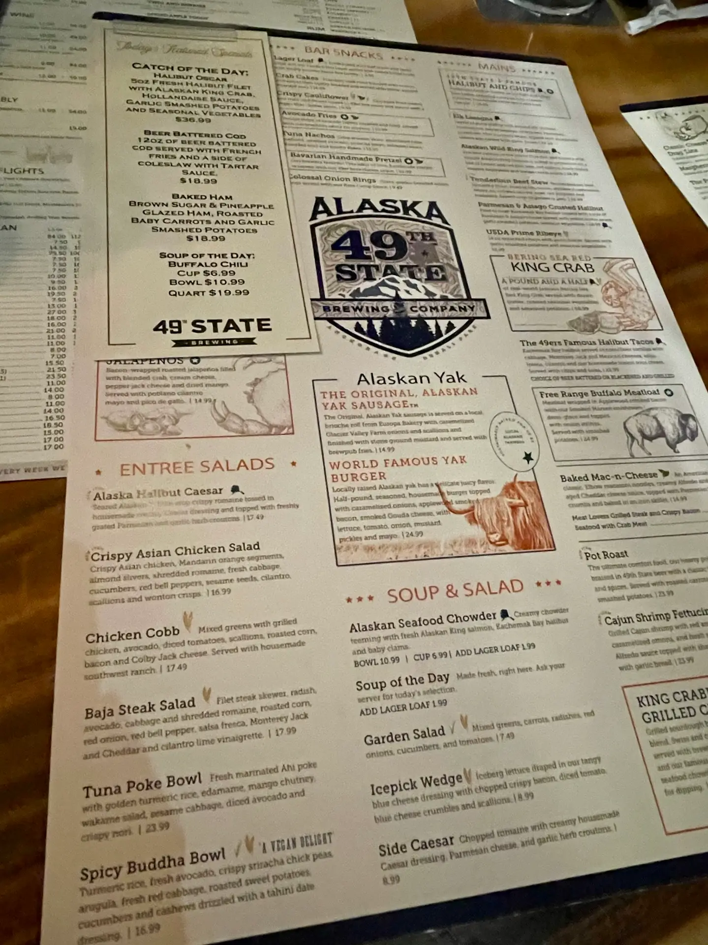 While our initial two days in Anchorage we quite laid-back, our final day proved to be nothing short of epic. On our last day, we set off on a scenic drive to Matanuska Glacier, setting the stage for an unforgettable glacier hike. We stopped at the Rustic Goat for lunch on the way and dined with one of the most beautiful backdrops. For more detailed information on our remarkable glacier hike, please refer to my Matanuska Glacier blog. After our glacier hike, we made a quick stop in Palmer for dinner at the Palmer Ale House. It was a perfect way to wrap up the Anchorage portion of our trip.