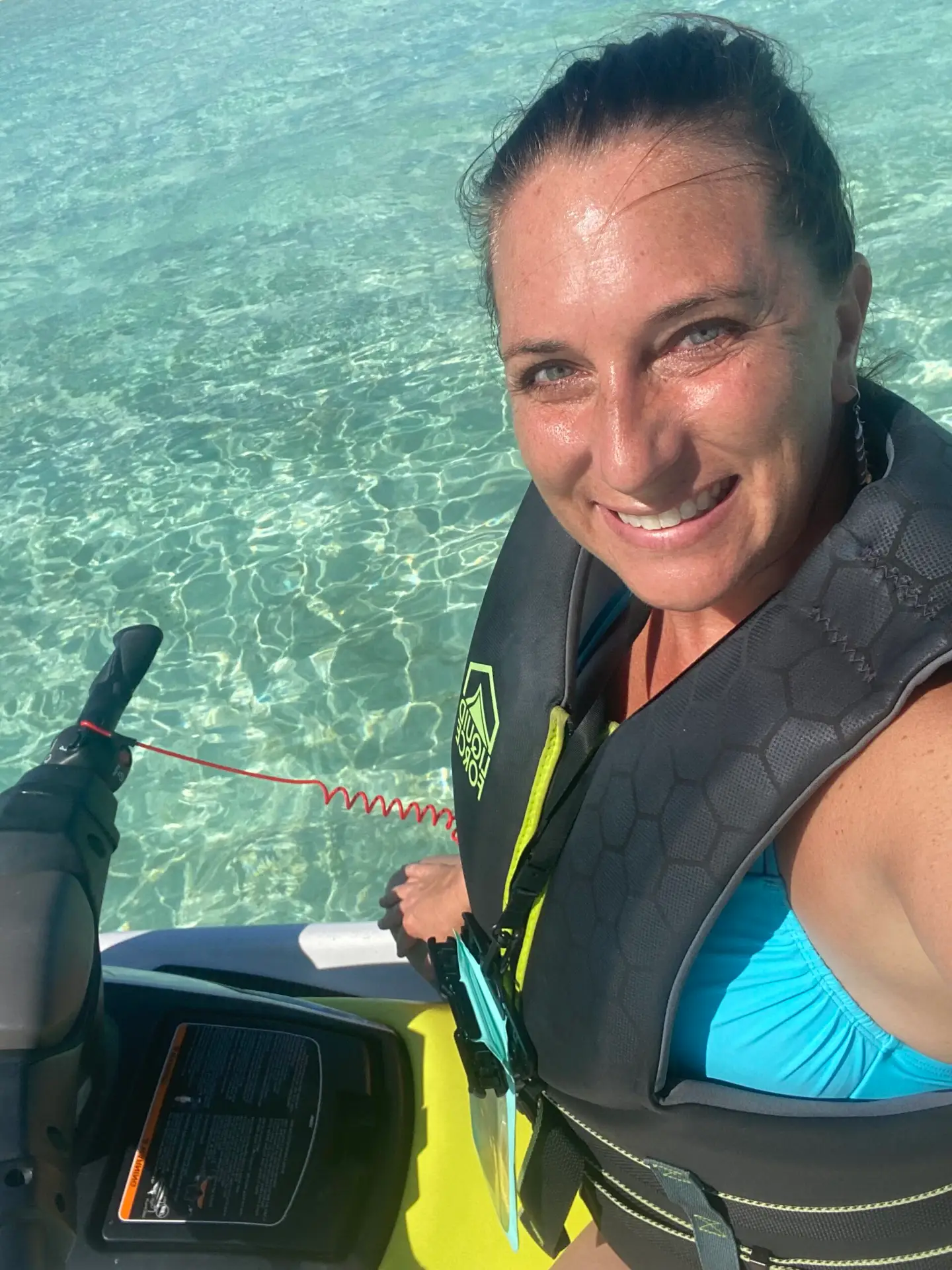 On our second day on Bora Bora, I seized the opportunity for an early morning run, and it turned out to be one of the most scenic runs I’ve ever experienced. Witnessing the sunrise over this paradise was an absolute delight. Then after a satisfying breakfast, I prepared myself for my jet ski adventure. I had some reservations, fearing that a guided tour might limit my freedom to enjoy jet skiing to the fullest. Boy, was I wrong! This tour turned out to be an absolute blast. Since Rosie wasn’t keen on jet skiing, I went by myself, and there were two other people on the tour. We circled a substantial part of the lagoon, and upon reaching a tranquil beach, one of our guides set up a fresh fruit platter on the back of his jet ski while we swam – it was a rejuvenating experience! Jet skiing itself was a ton of fun, but what truly made this adventure exceptional was the unbelievably warm, crystal-clear water that surrounded me throughout the ride. At one point, we had a minor hiccup with one of the jet skis having some mechanical issues. While waiting for a replacement, we took advantage of the opportunity to watch the sting rays and full throttle the other jet skis around the lagoon. The presence of all those graceful stingrays swimming around us added an extra layer of excitement as we watched them glide and even engage in playful chase games.