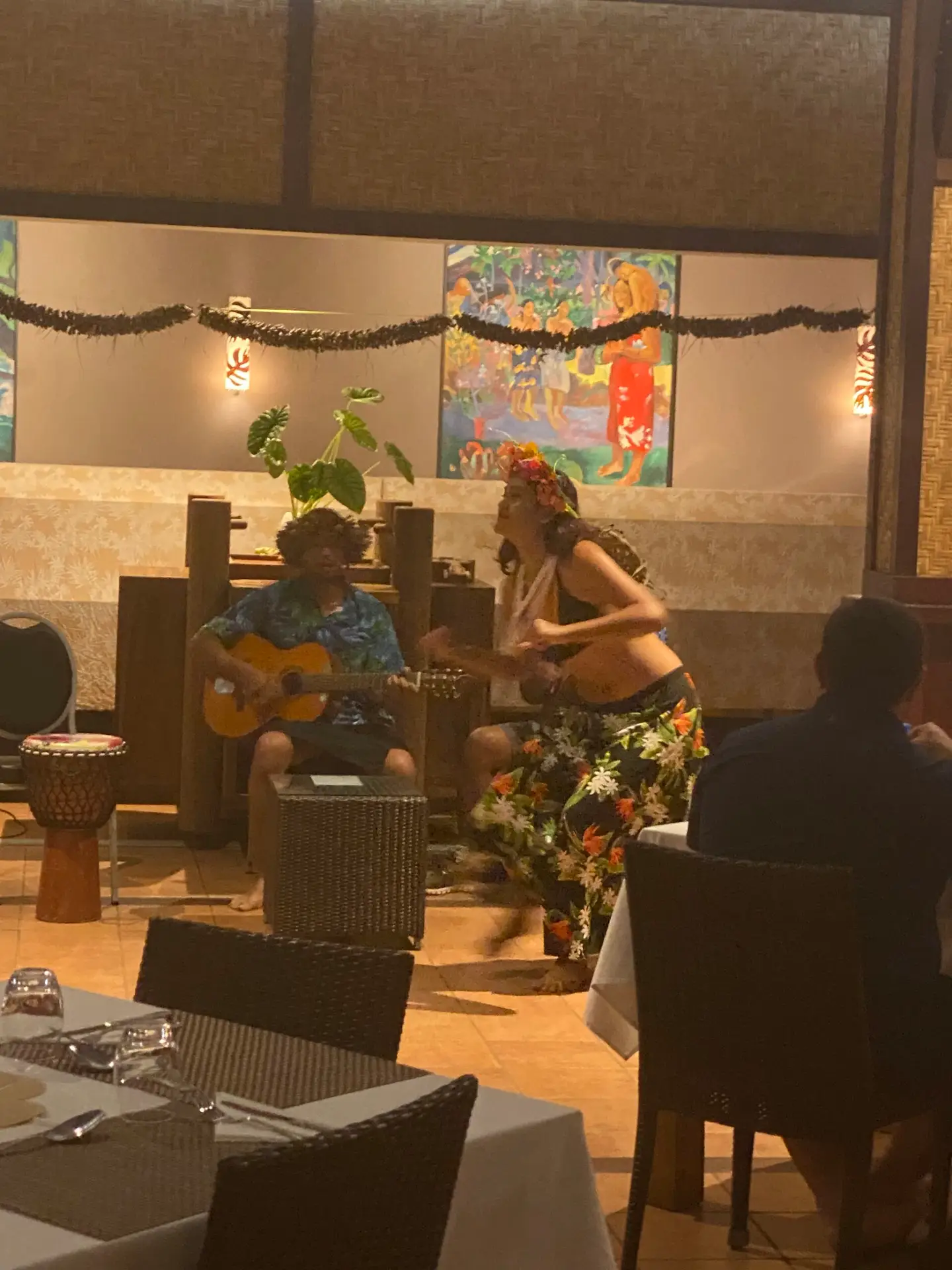 We stayed two nights on Bora Bora, the initial night at the Royal Bora Bora Hotel. Despite our room being situated across the street from the ocean we found the hotel to be delightful. The dining area, perched right by the ocean, offered fantastic cuisine and evening entertainment in the form of live music and Tahitian dancing. After checking in and getting ourselves comfortable, the afternoon swiftly turned into evening. We treated ourselves to tropical cocktails, dined, made reservations for a jet ski adventure the following day, marveled at yet another breathtaking sunset, and called it a day.