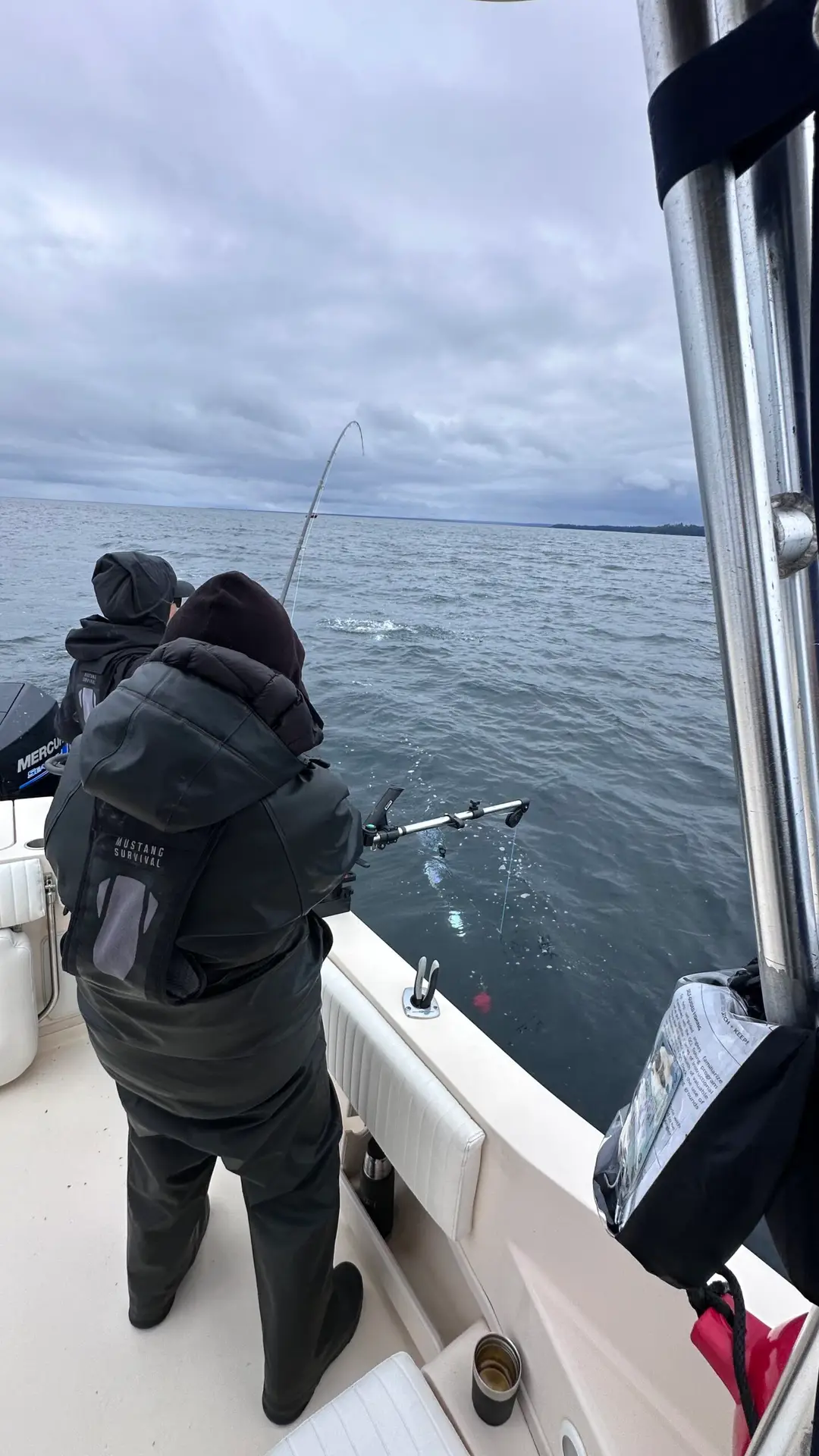 Our second day started early with breakfast, and we were on the water by 8:30. It was another beautiful day—sunny, calm, and perfect for just hanging out on the boat. The fishing was a bit slower, but we still landed two more coho and two more chinook, which actually brought us to our chinook limit. No complaints there.