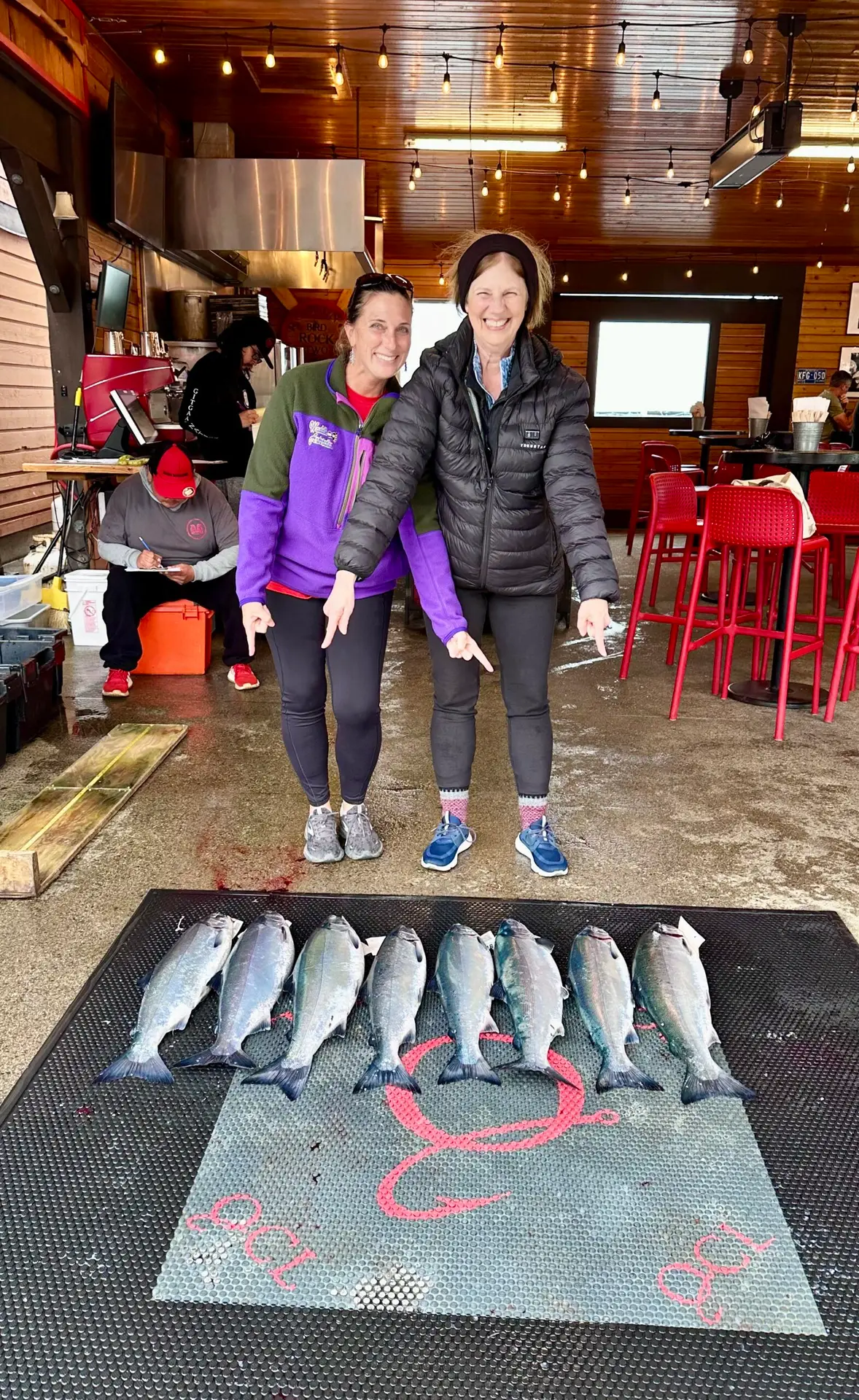 Still, we killed it that first day: six coho and two chinook, and back to the dock well ahead of most of the other boats. We docked, changed clothes, and headed straight to the fish weigh-in—our new end-of-day ritual—before cleaning up for dinner.
