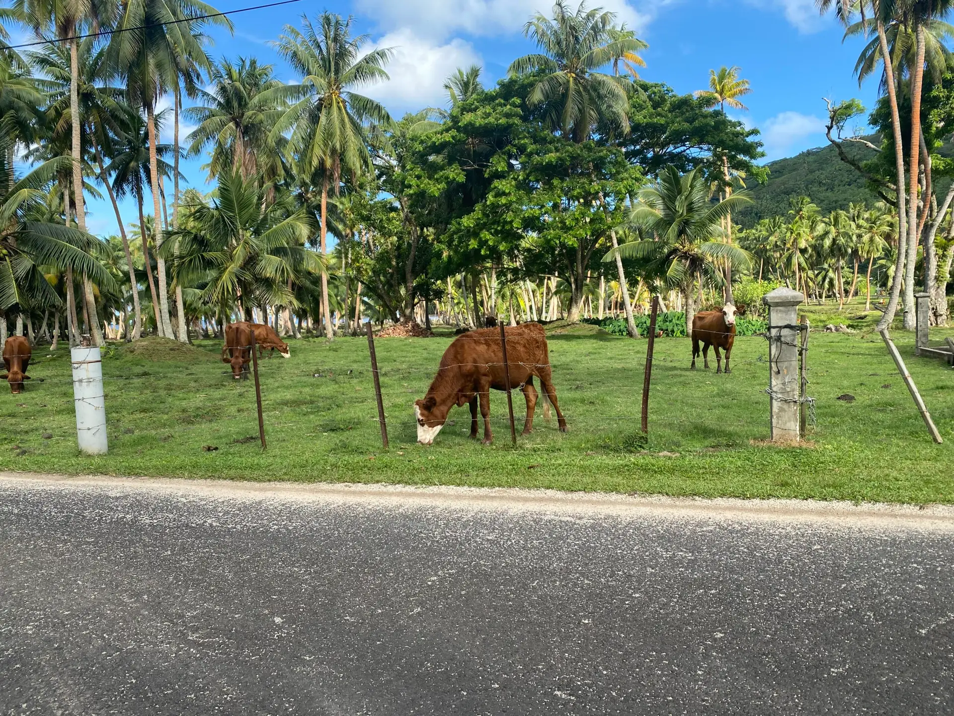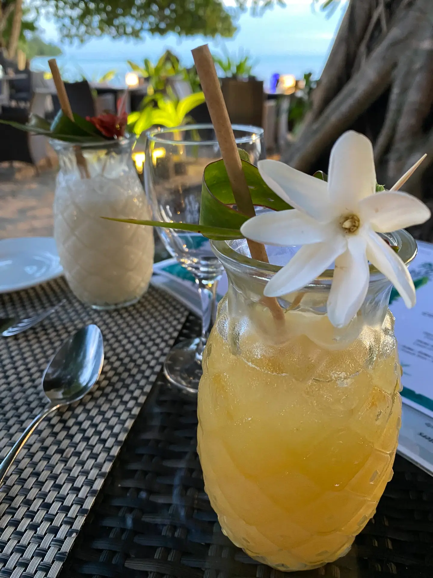 Jacques did end up meeting us at the airport, but we never figured out where he was the first time around. Rosie and I loaded in the car he loaned us and followed him to our Airbnb. It was simple with no frills – very much an island home. Even though it had a padlock on the door, something we were not used to, it became our Huahine home away from home. We dropped off our things and set out to explore the island. We enjoyed some magnificent views on our drive and had a great meal at Hotel Le Mahana where we ran into Nicole and her group on one of three other occasions outside of the airport mix-up! Despite the language barrier, we shared some moments with Nicole’s group and tried to order drinks for their table, but that didn’t seem to work well as we were never billed for three extra drinks.