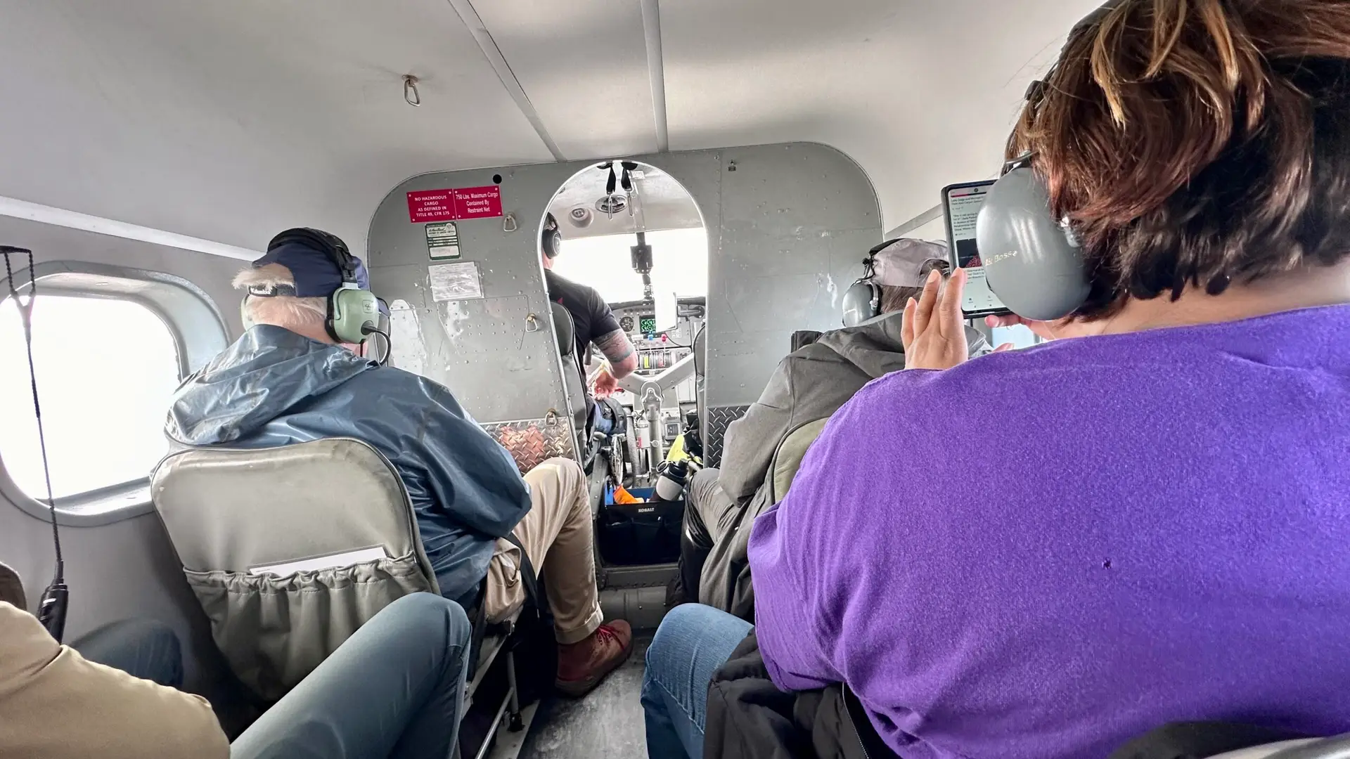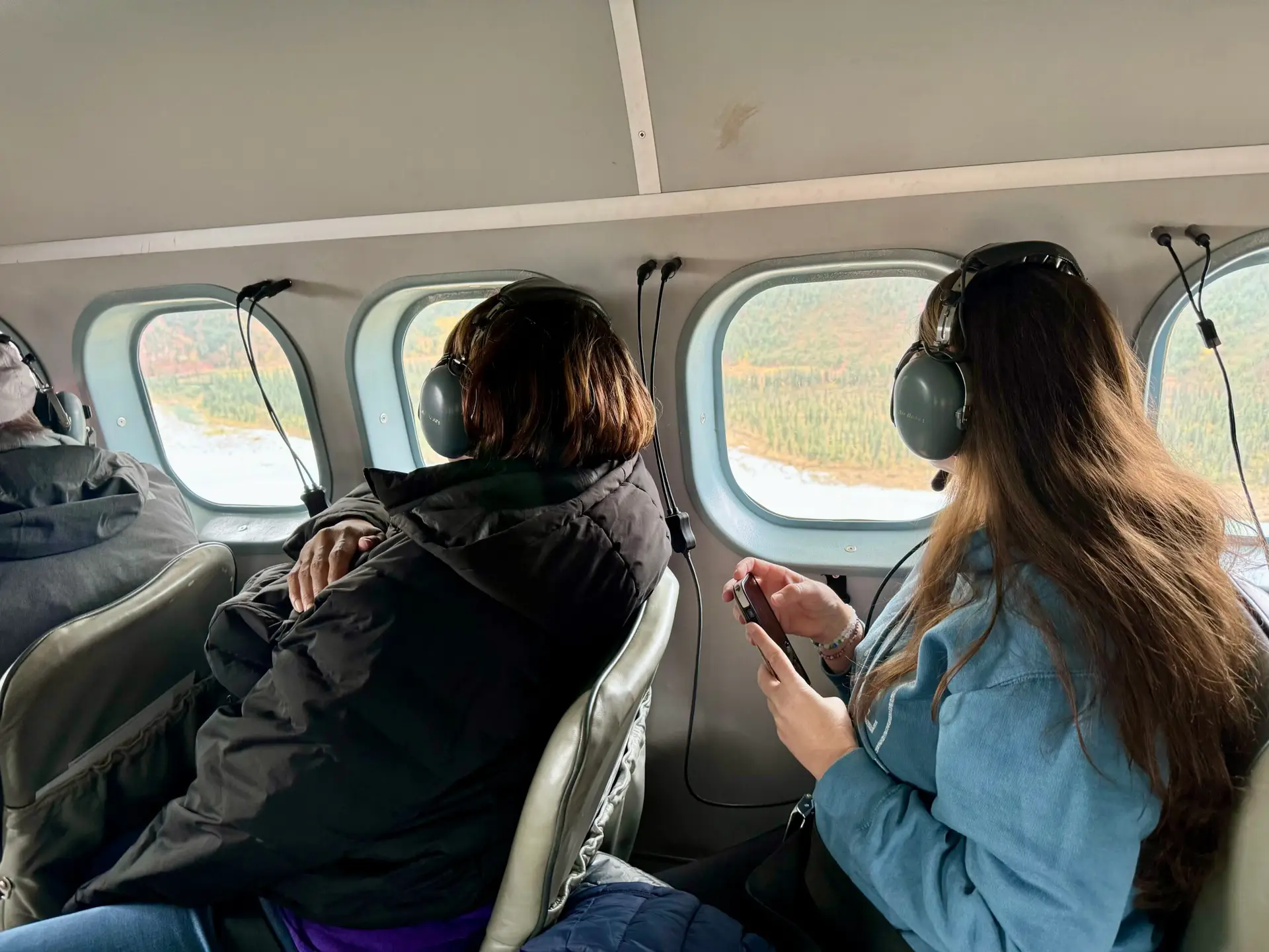 Thursday morning began under a blanket of clouds. At 8 a.m., we texted the tour company, unsure of what the day held. “Meet at 10:15,” they said. Perfect. At 10:00, they changed the time to 10:30. But by 11:00, we were finally boarding the small plane, where Remy, the tour company’s dog, darted around us, desperate to join the adventure. His eyes, full of hope, mirrored my own excitement.