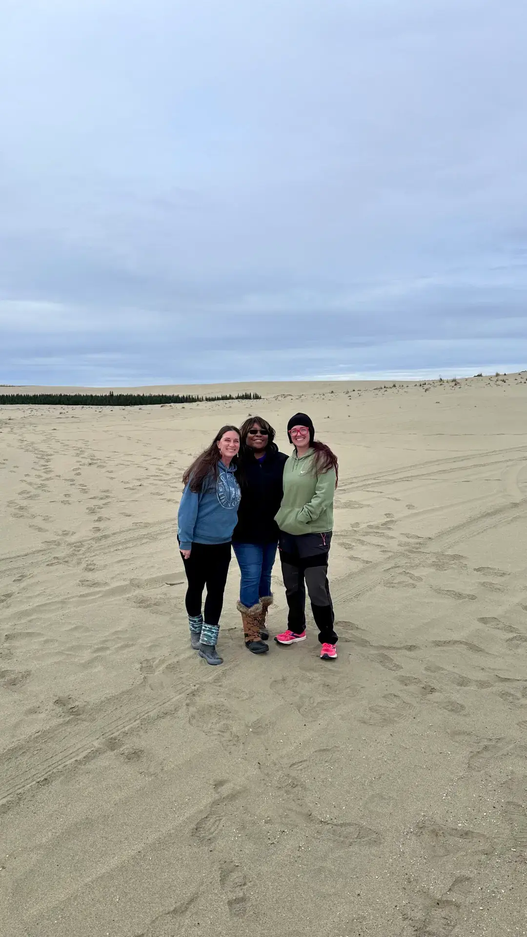 The climate is interesting, too—low precipitation and high winds mean the sand stays mostly bare, so we get to enjoy this lovely desert vibe without vegetation getting in the way. These weren’t the towering, rolling hills of sand you might find at more famous dune locations, but they had their own charm—more like gentle waves than giant mountains. It felt like we were on another planet, with the mountains in the distance and lush forests behind us creating a stunning backdrop.