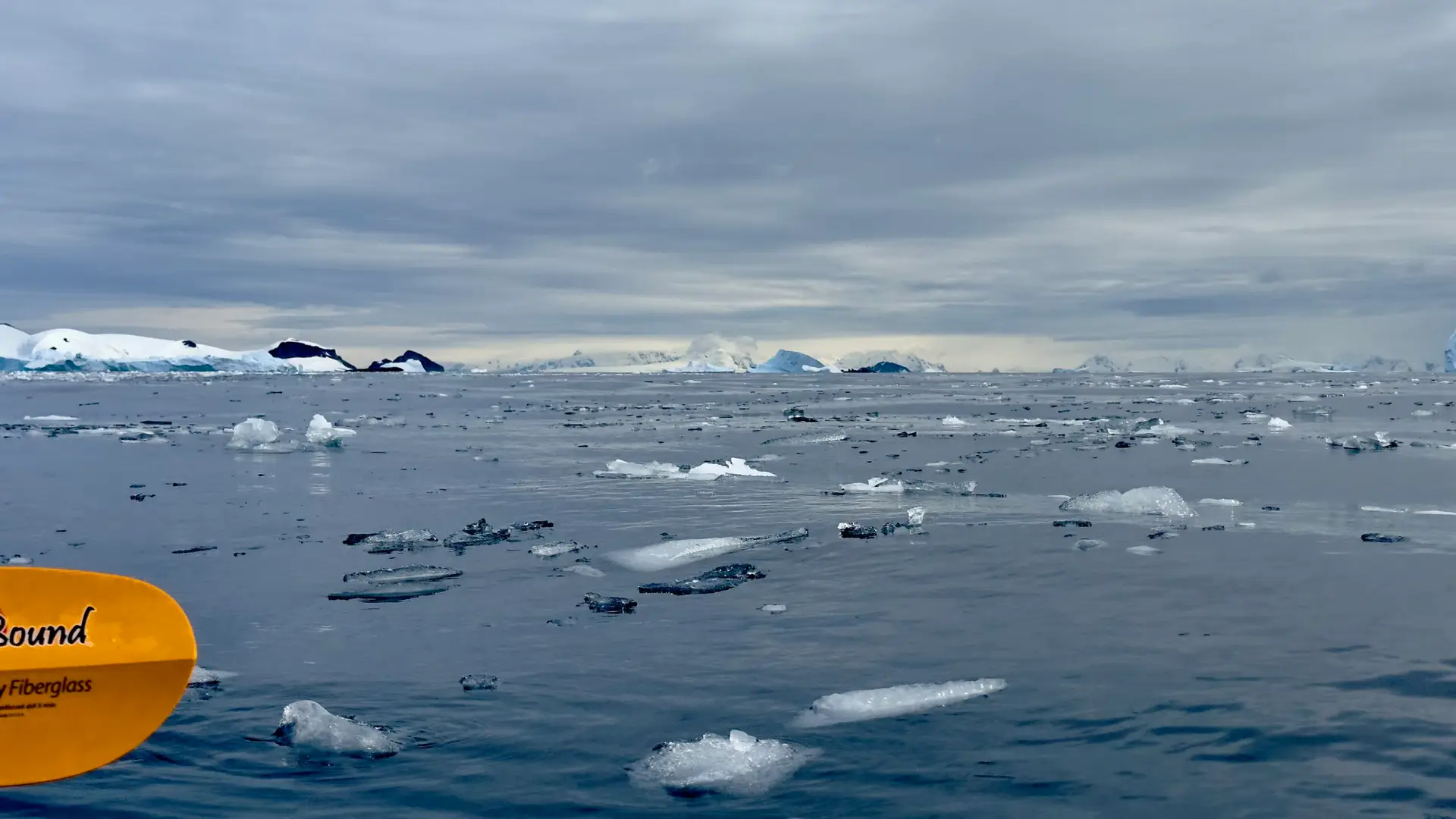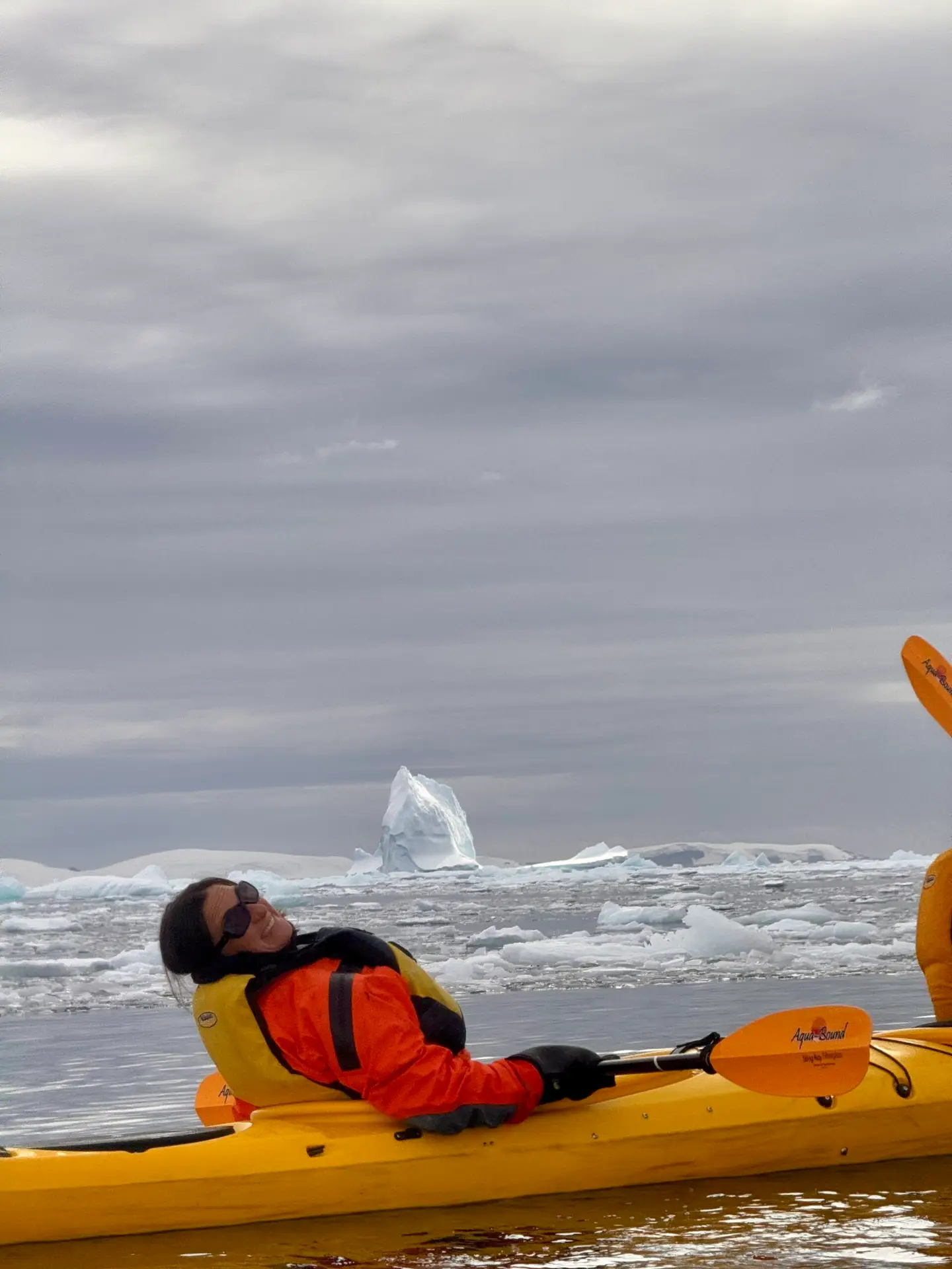 Almost immediately, our group paddled into broken sea ice—crunching through the slush to visit a seal lounging lazily on a nearby iceberg. It lifted its head to look at us, and I couldn’t help but smile. I was kayaking in Antarctica, ten feet from a wild seal, surrounded by nothing but ocean, mountains, and floating ice. It felt like another planet.