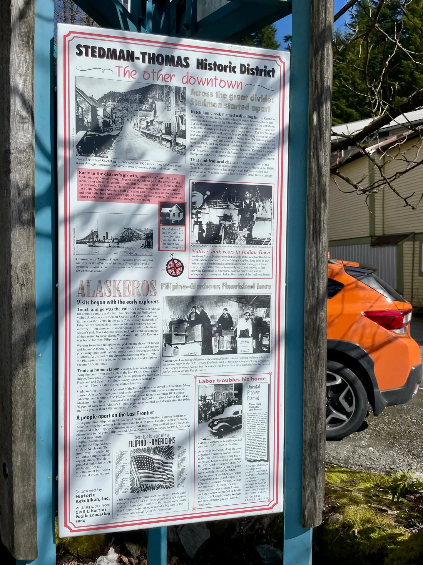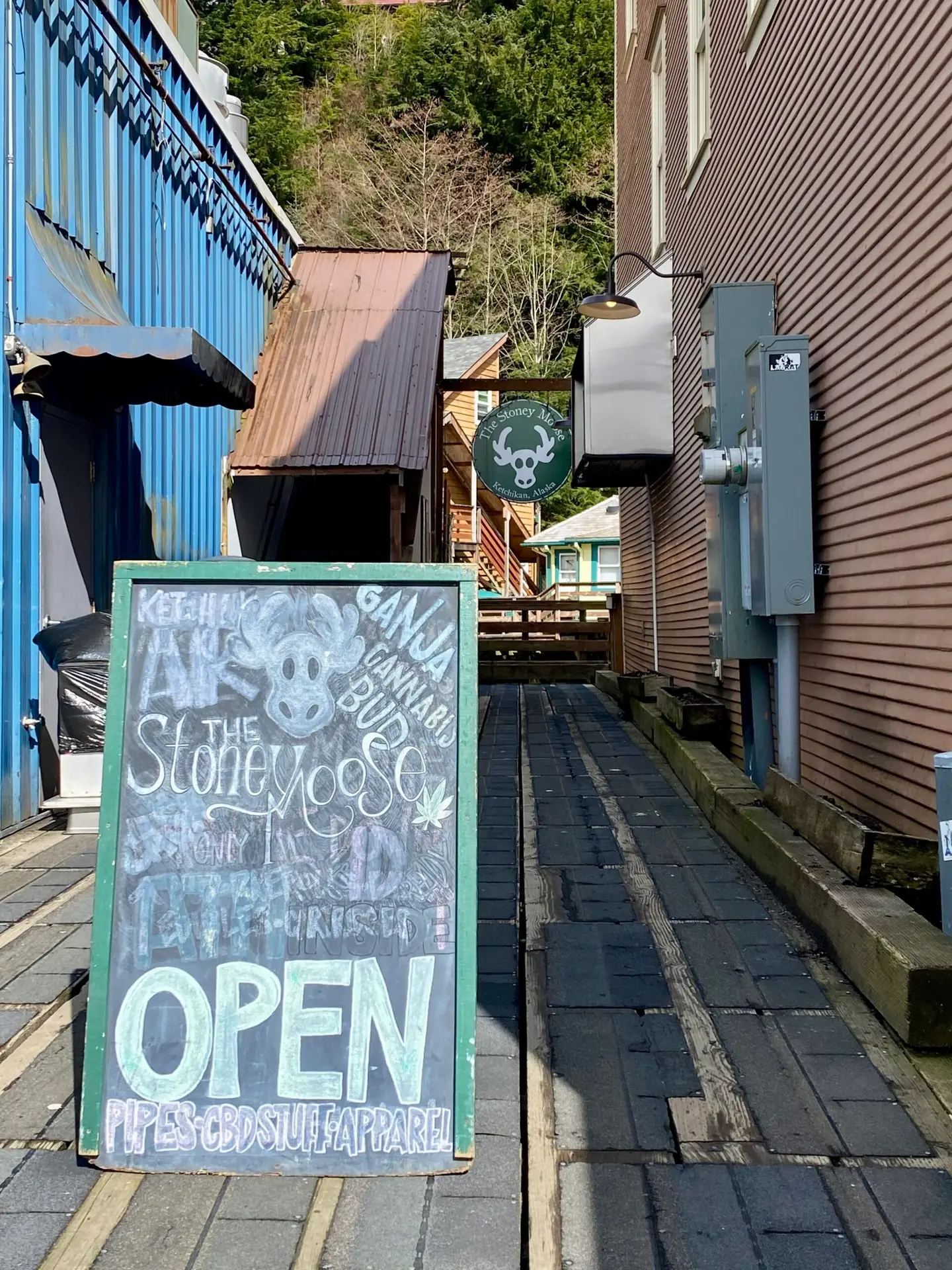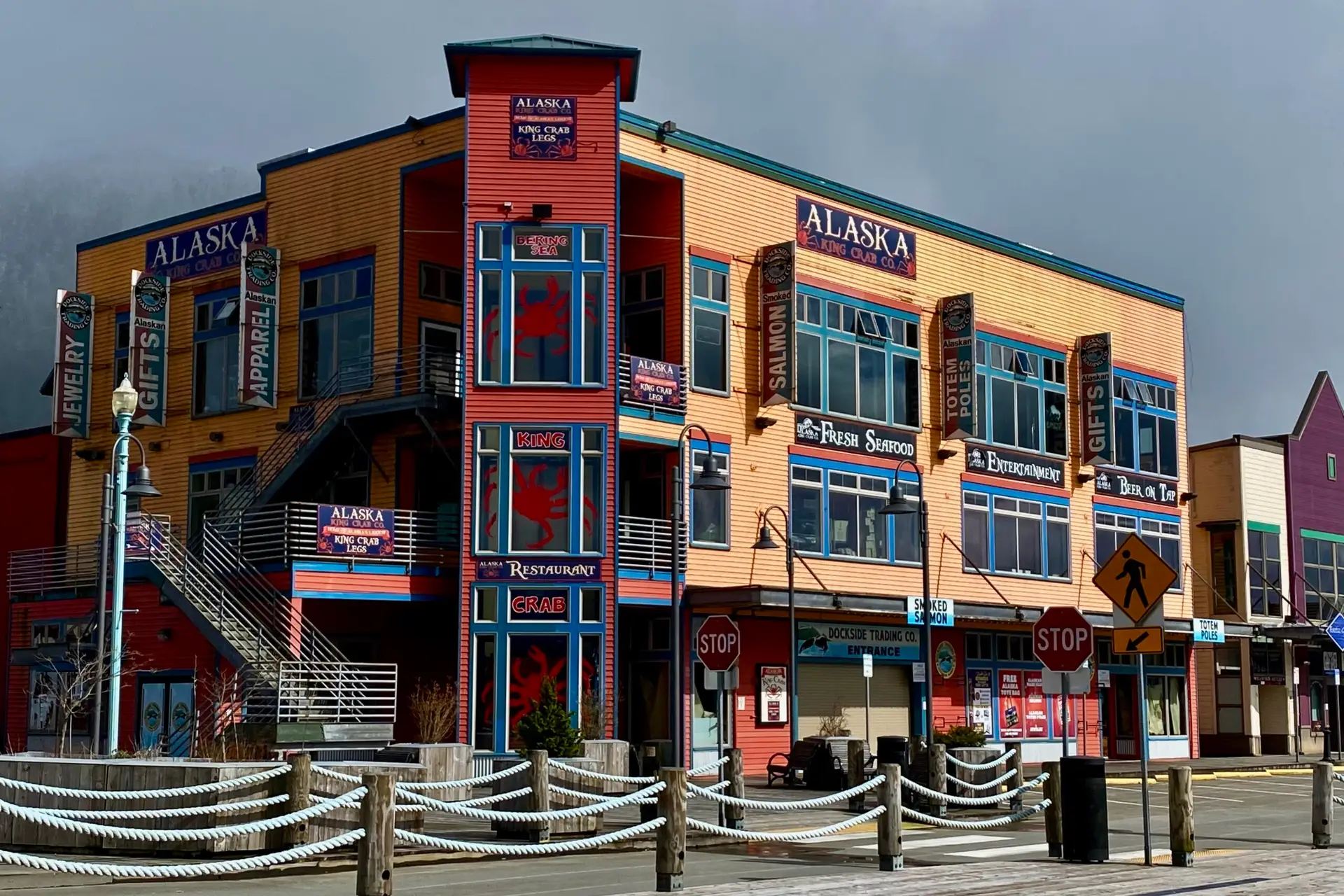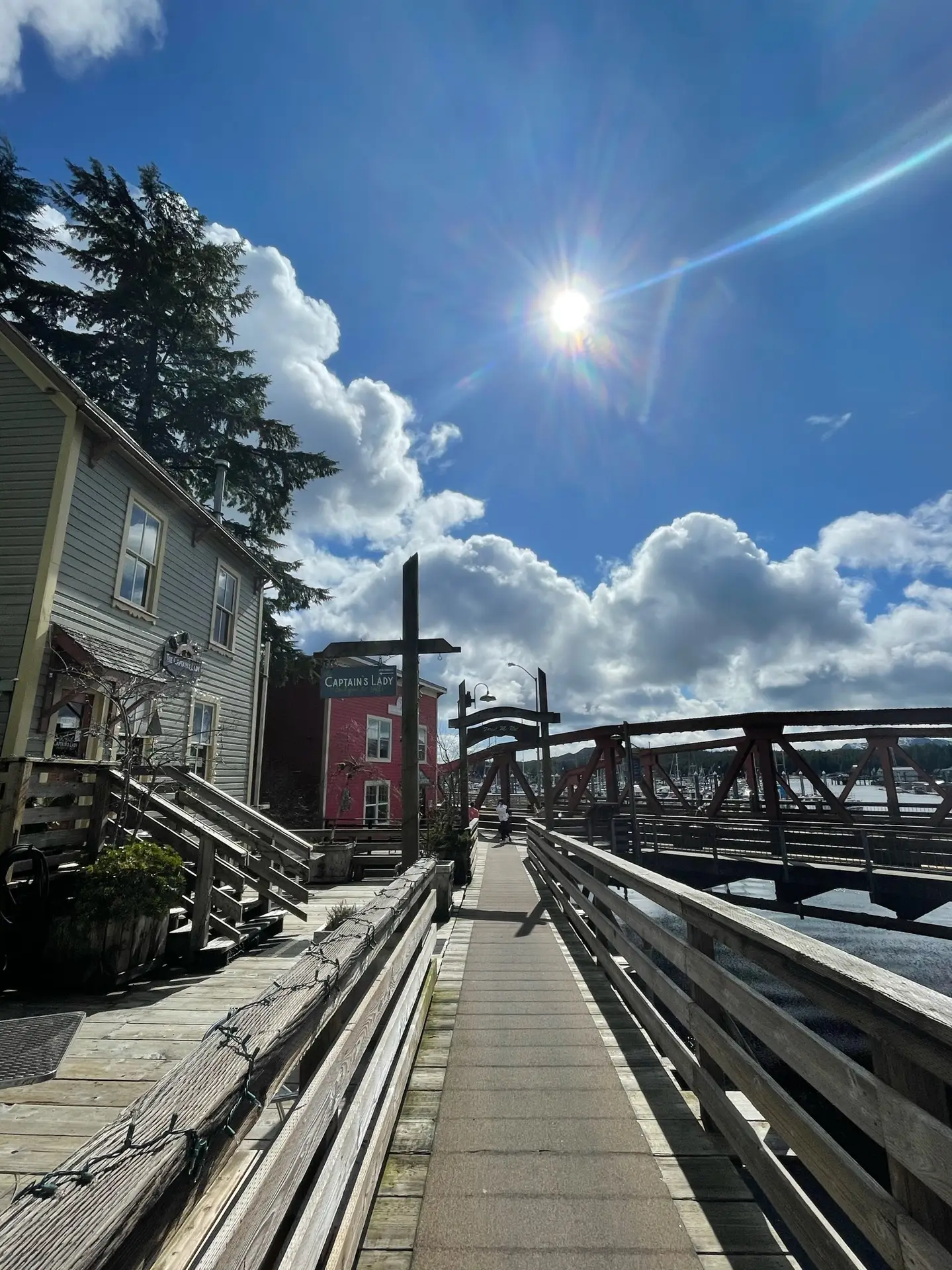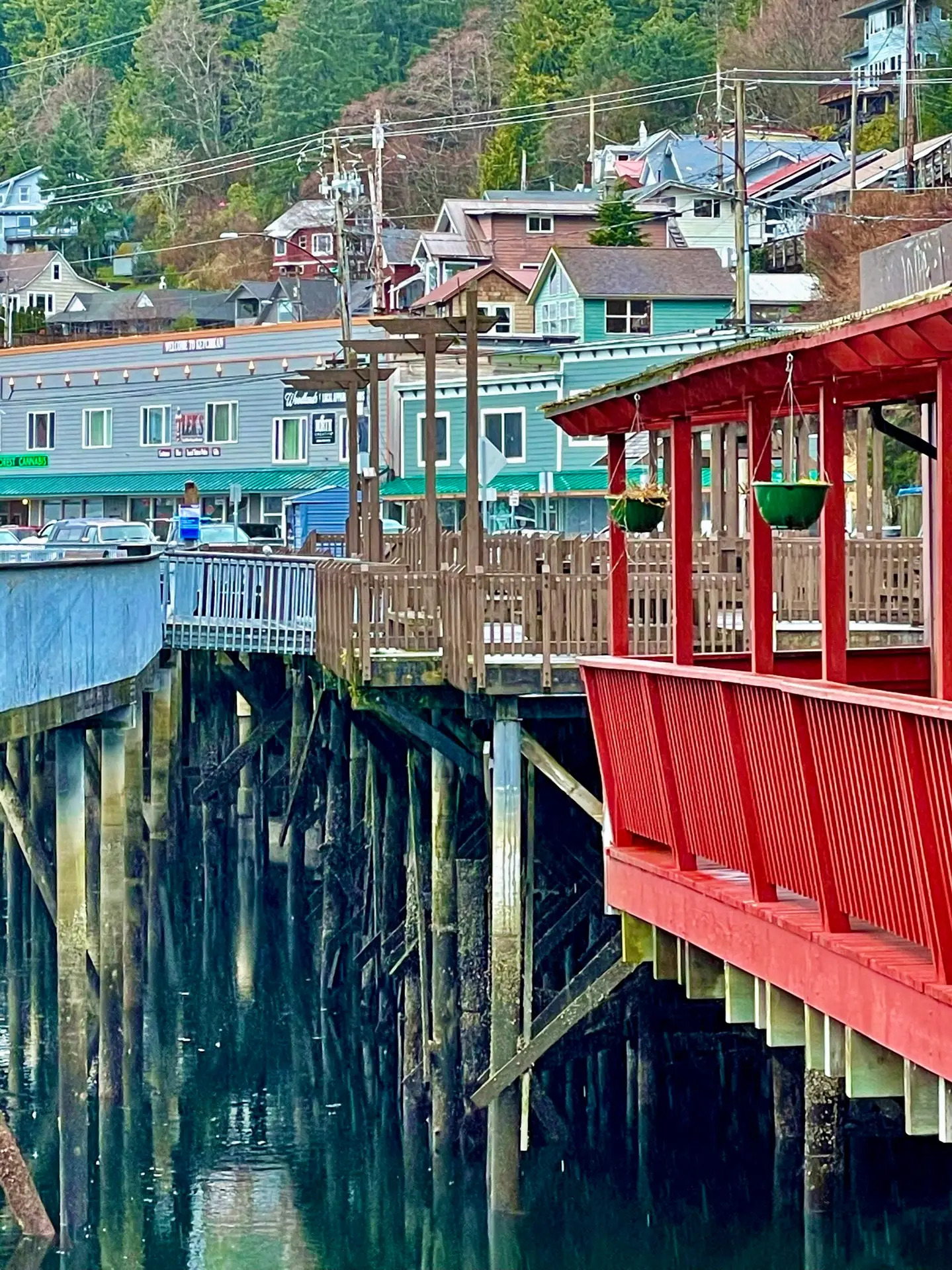 One of Ketchikan’s most famous attractions is Creek Street, a historic boardwalk lined with quaint shops and boutiques. This charming street was once the heart of the town’s red-light district during the Gold Rush era and is now a popular destination for shopping, dining, and exploring local art galleries. Unfortunately, our timing in Ketchikan was not the best as it was towards the end of Covid restrictions, and many shops were still closed. Ketchikan’s economy relies heavily on tourism from cruise ships and fishing expeditions, and with these industries not yet resuming operations, there simply wasn’t enough business for many places to reopen at this time. We spent our time on Creek Street admiring the beauty of the area, from the colorful buildings to the actual creek, and reading about its fascinating history that was posted along the way.