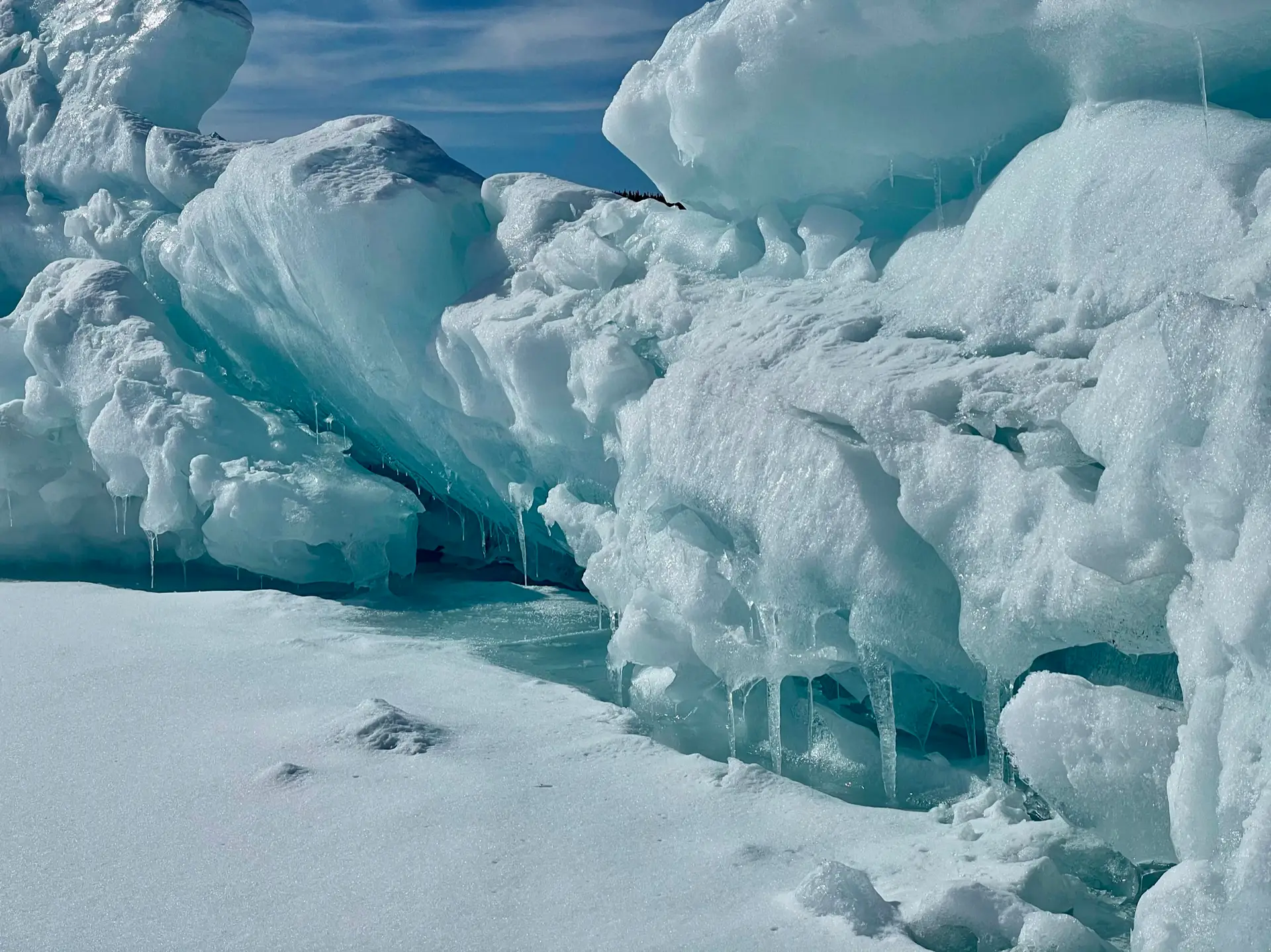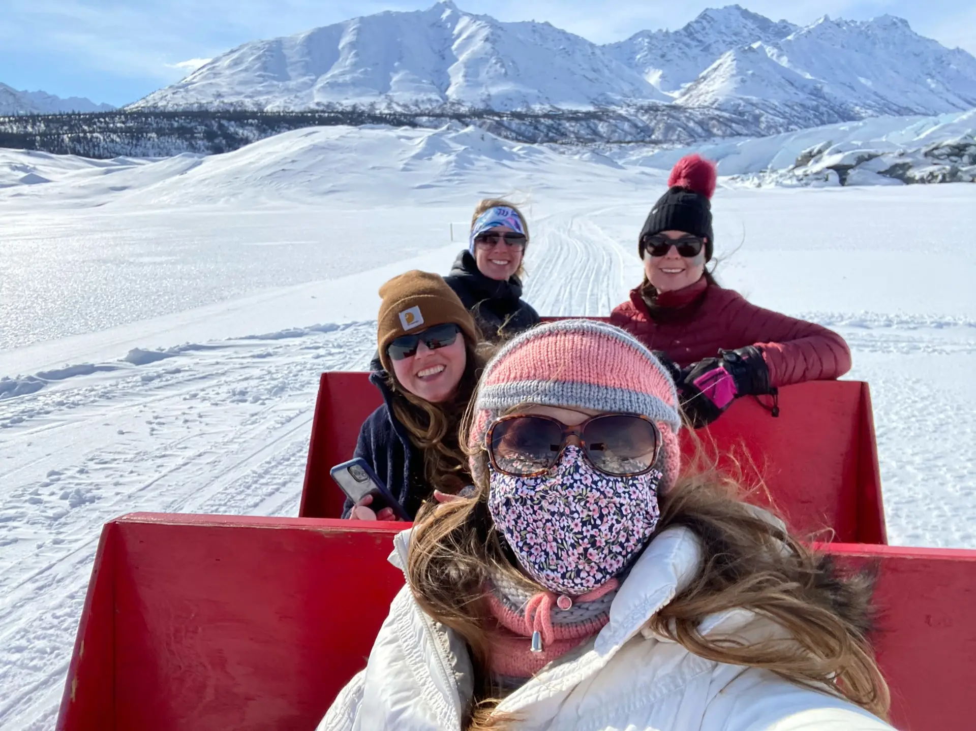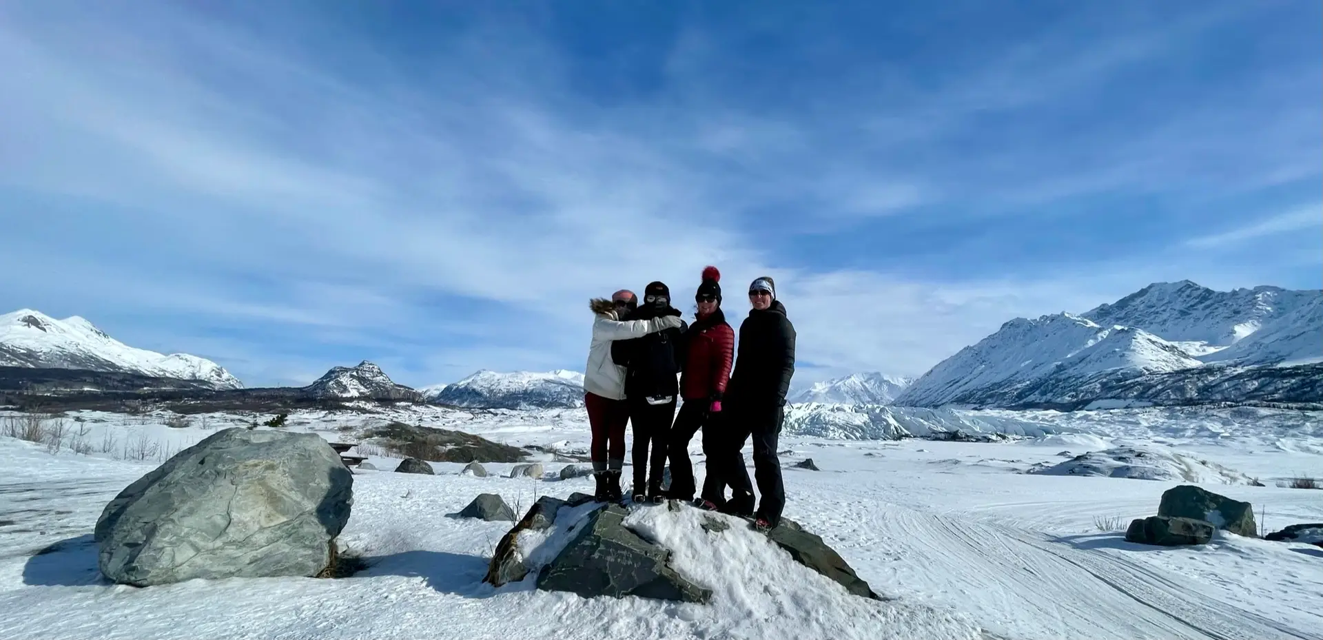 The tour started with a snowmobile/sled ride (yes, yes, snow machine to you Alaskans) to get us up close and personal with the glacier. From there, we set off on foot. As we approached the glacier, its sheer size took our breath away. Matanuska Glacier stretches approximately 27 miles and covers an astounding 26 square miles. We were immediately captivated by the brilliant blue ice, intricate crevasses, and towering ice formations that greeted us. Equipped with crampons, we hiked across the icy expanse, discovering hidden crevasses and enjoying panoramic views of the surrounding landscape.