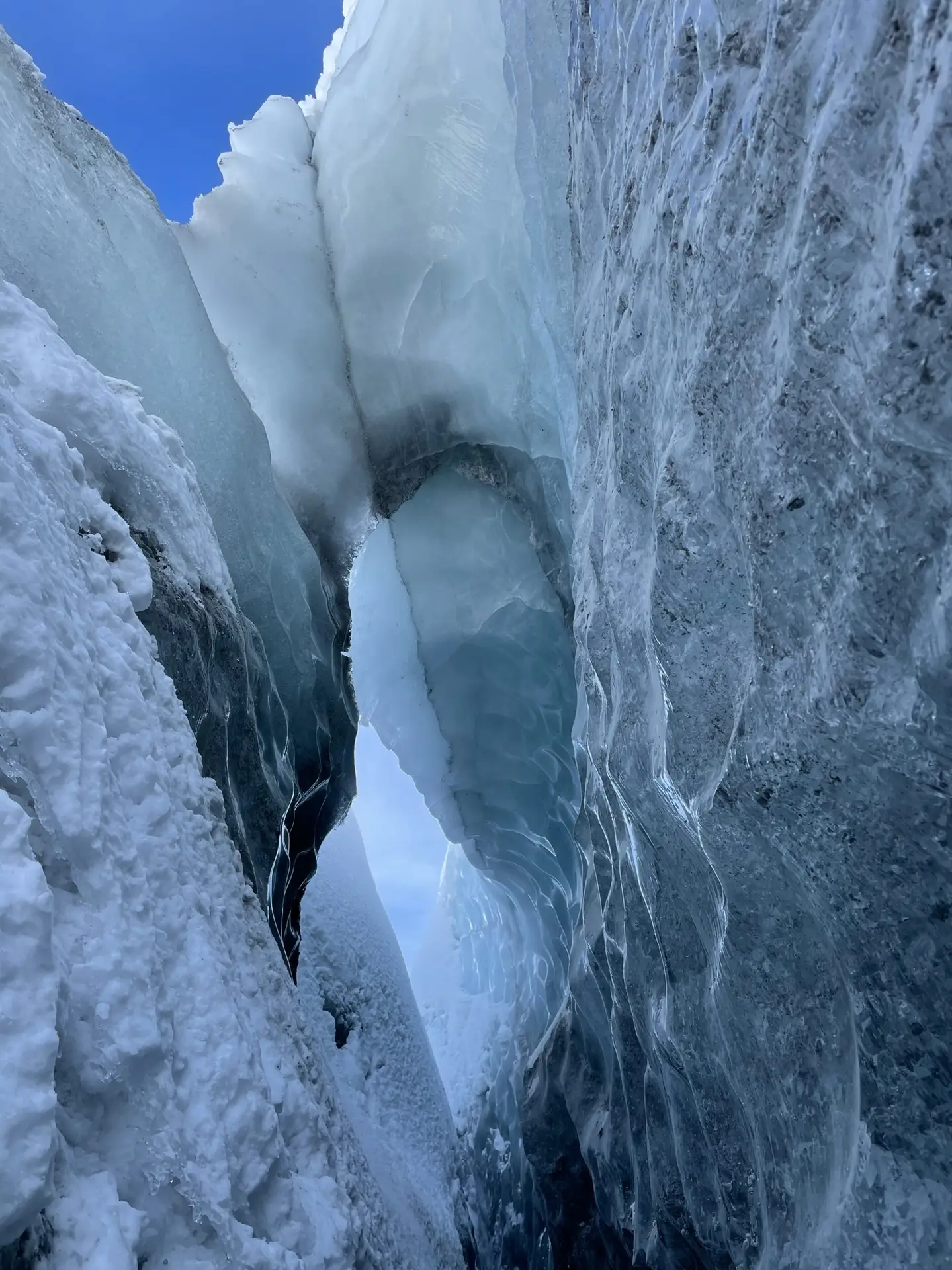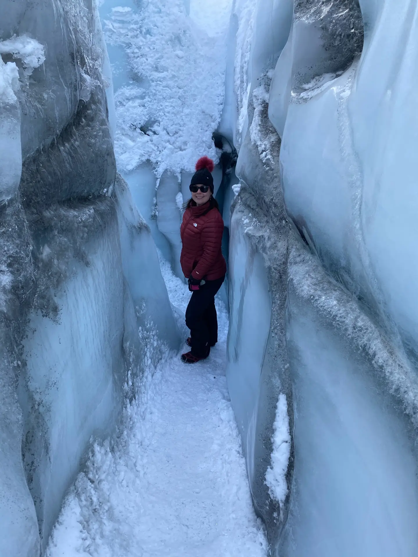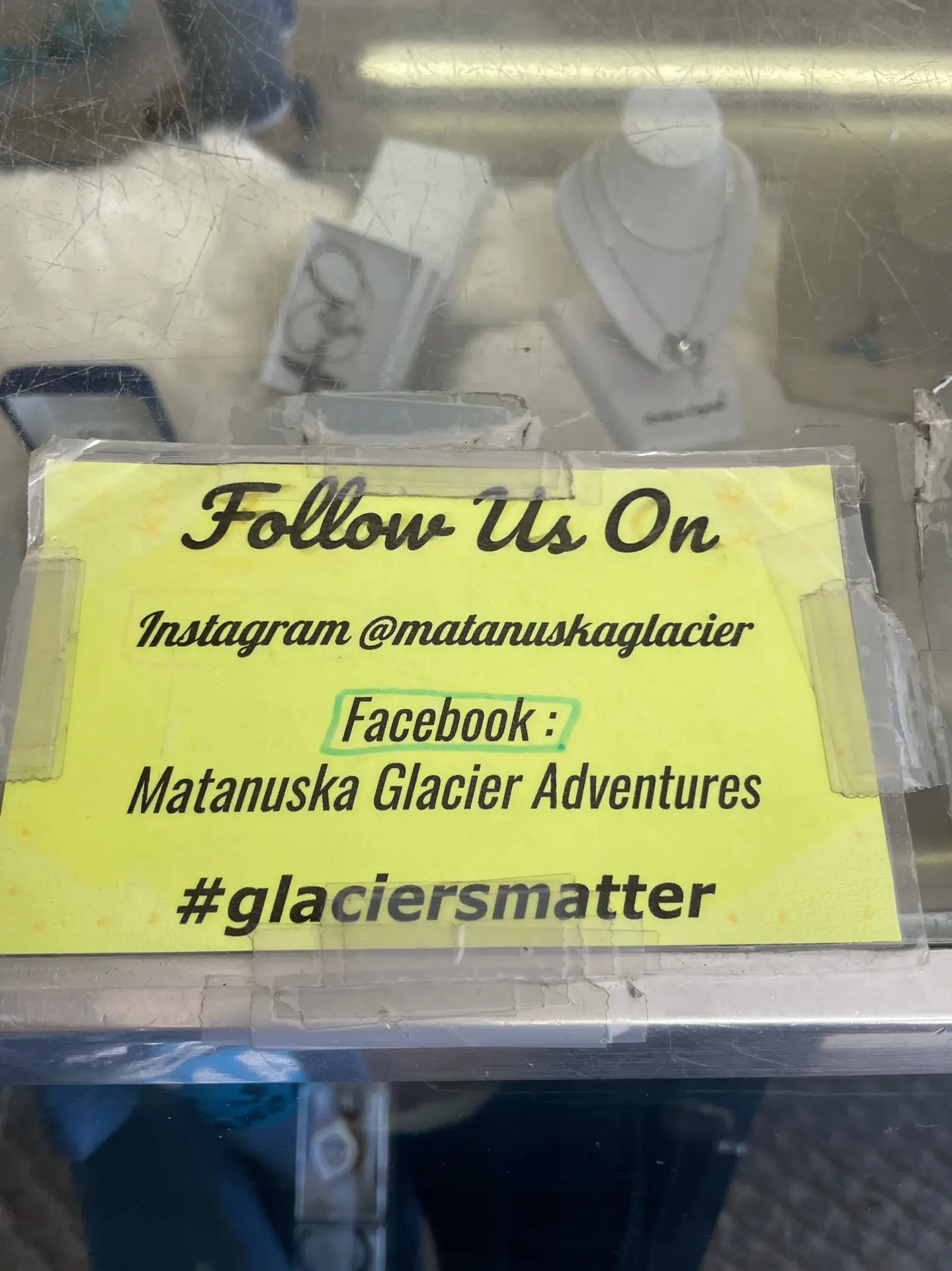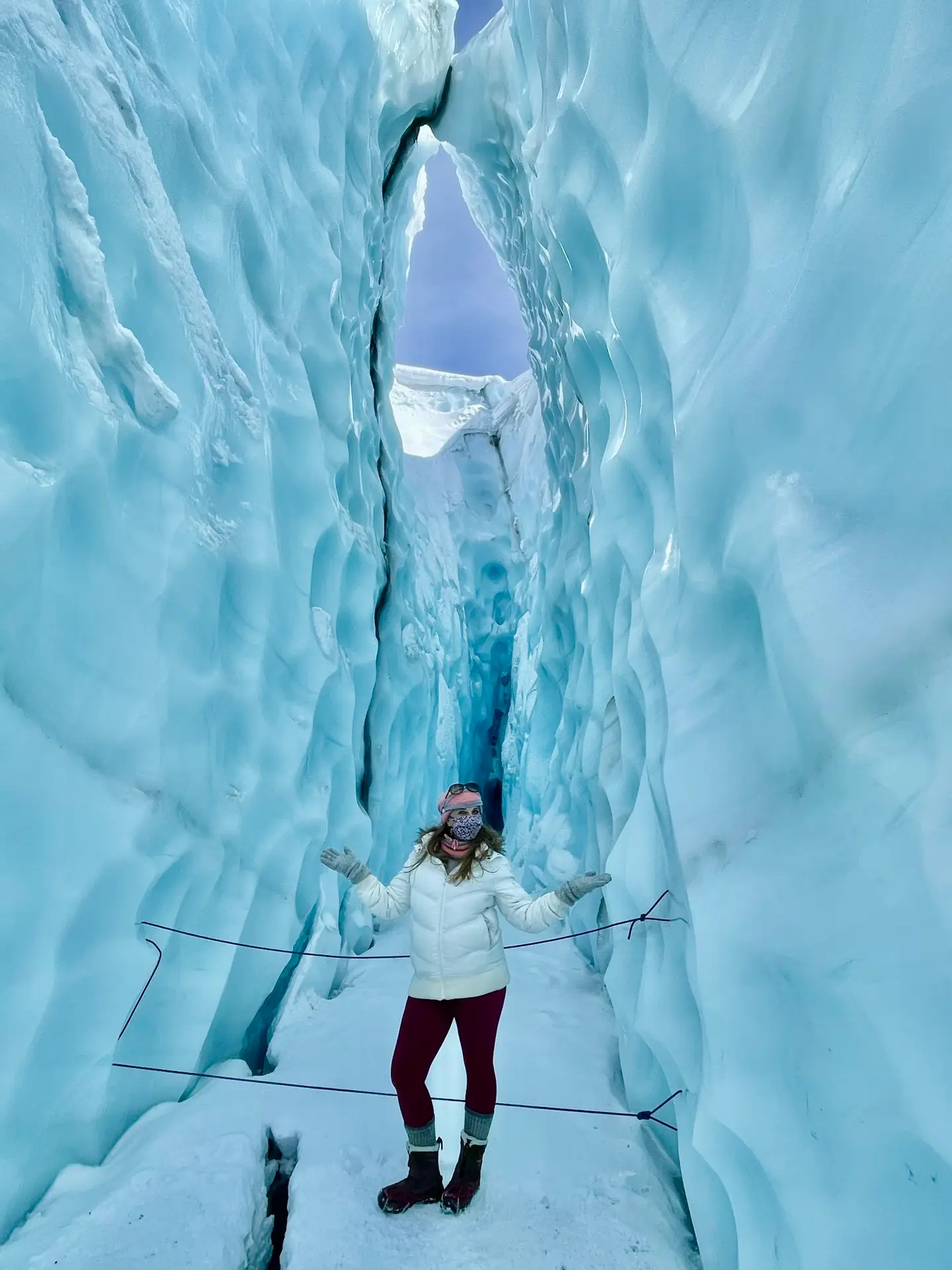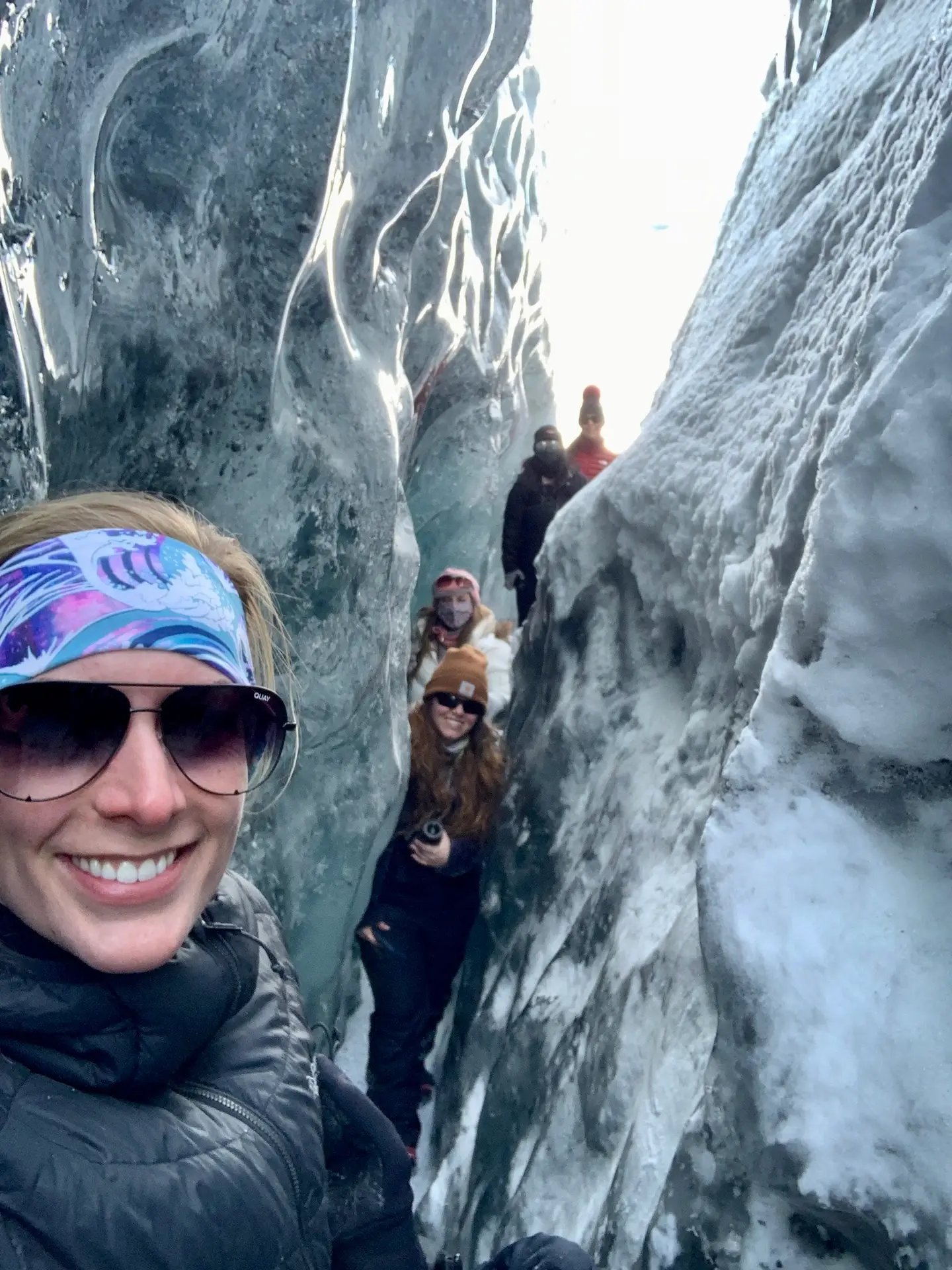 area we were in was safe, so we all tasted the fresh glacier water. Krystal also treated herself to a glacial mud mask – glacier mud typically contains minerals (such as silica, magnesium, calcium, and potassium, which can help nourish and revitalize the skin), nutrients, and organic materials. As glacier mud dries, it may draw out impurities from the skin, unclog pores, and exfoliate dead skin cells. This can leave the skin feeling refreshed, smoother, and more radiant.