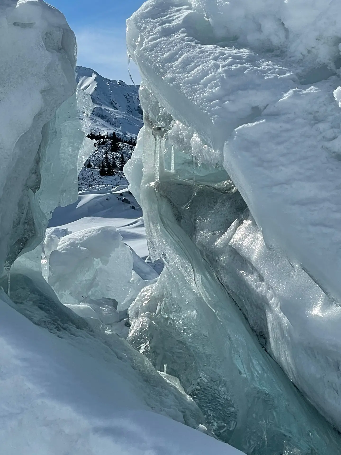 After a day filled with exploration, picture-taking, and even a little ice-picking, we retraced our steps back to the starting point, concluding this adventure with a final snowmobile ride.  Before we left, Krystal realized that she hadn’t paid due to a restroom break earlier.  The clerk initially thought that she had, but upon further inquiry, it turned out Krystal had indeed missed her payment.  In a heartwarming display of appreciation for our honesty, the owner rewarded each of us with a complimentary shirt.  It was a poignant reminder that honesty is always the best policy, and when you choose to act with integrity and do good, unexpected rewards have a way of finding their way back to you.  It was a perfect conclusion to an already fantastic day.