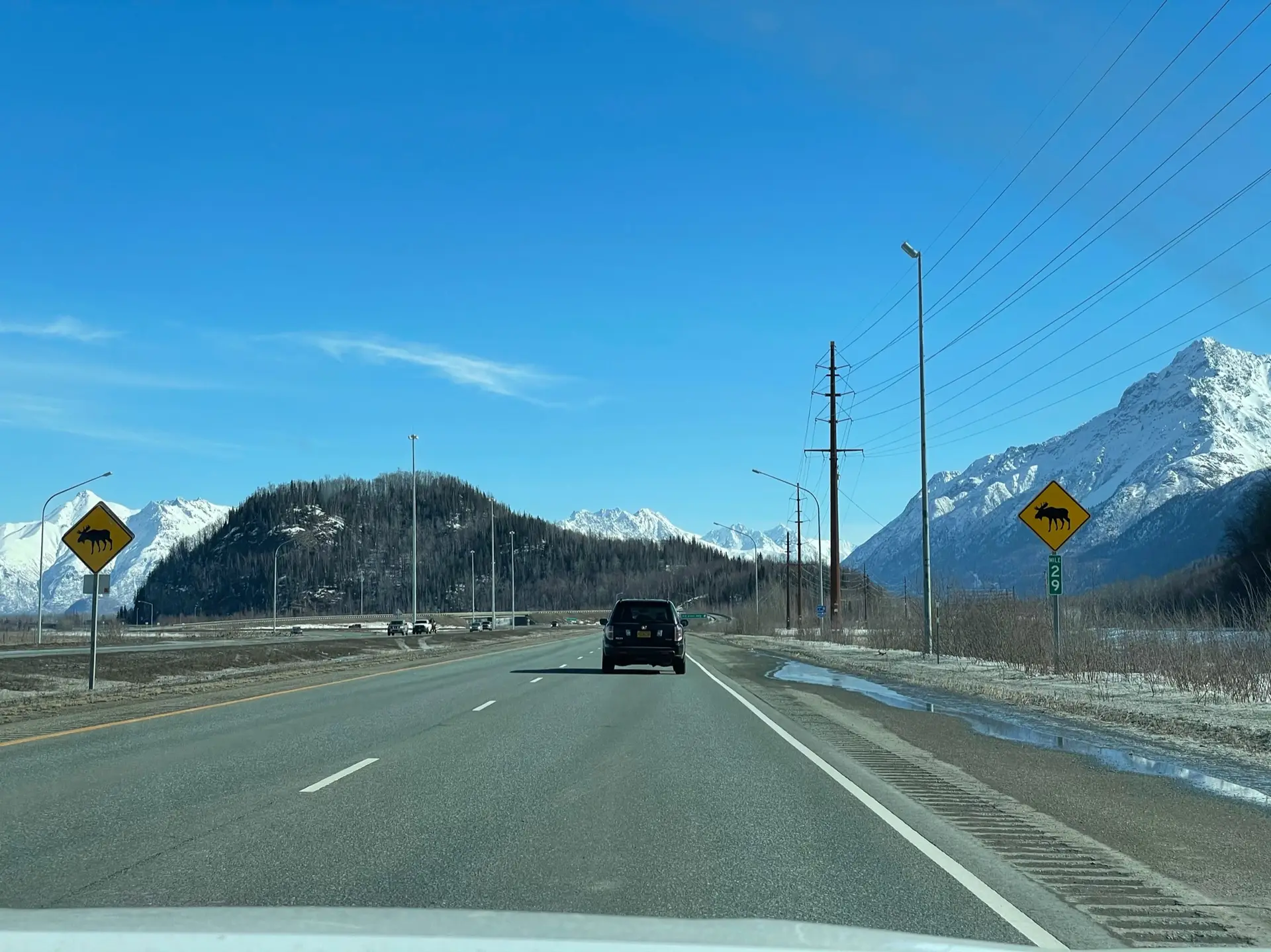 We started this daytrip with a scenic drive to Matanuska Glacier, roughly two hours away. The road itself offers stunning views of the Chugach Mountains and the surrounding valleys. I had my eyes peeled for moose, but all we saw were moose warning signs. As we approached Matanuska Glacier Adventures, the tour company that we were going with, the road got quite sketchy, as they had promised it would. We made our way down the snowy, winding driveway, white-knuckled and teeth clenched.