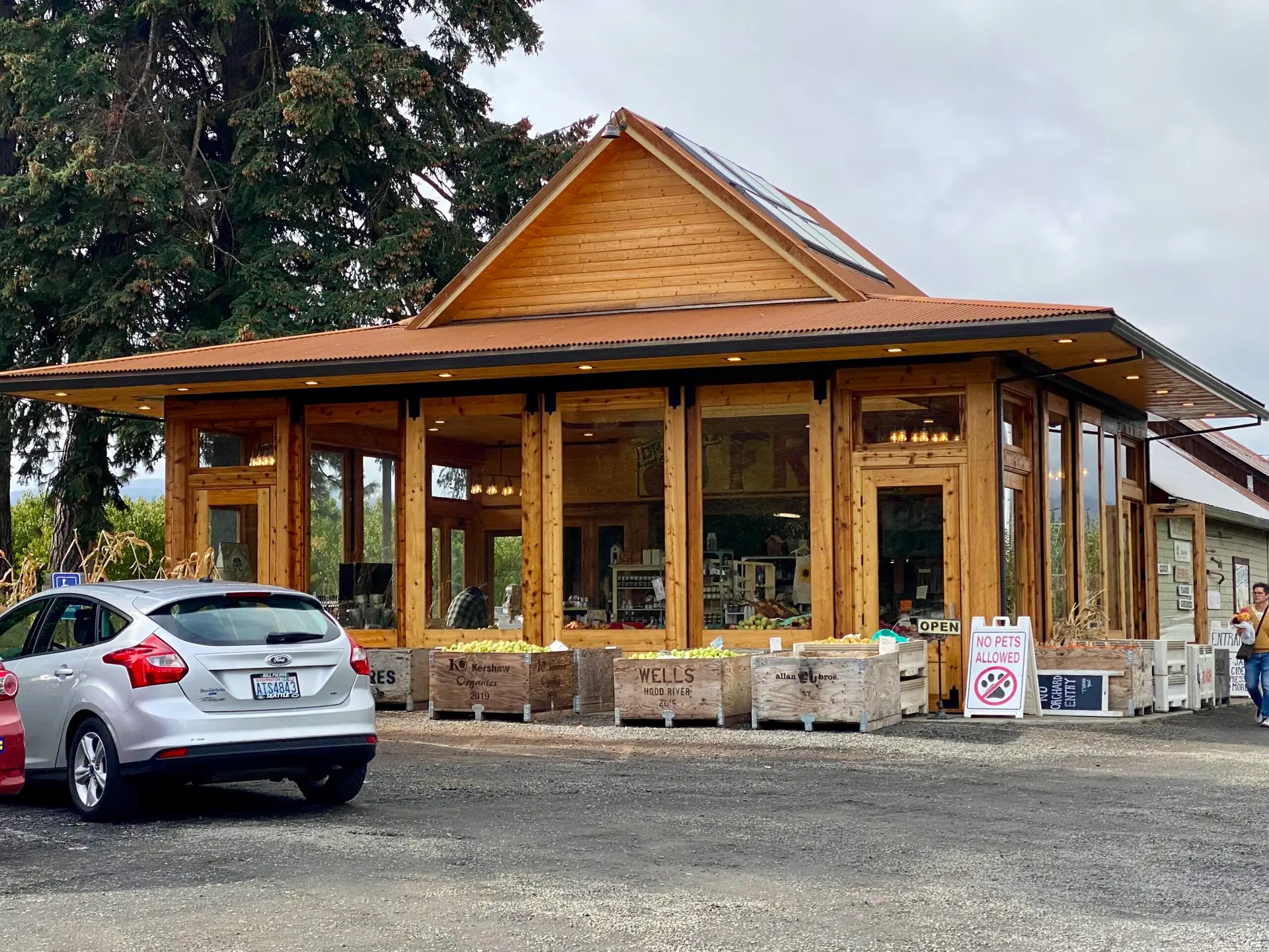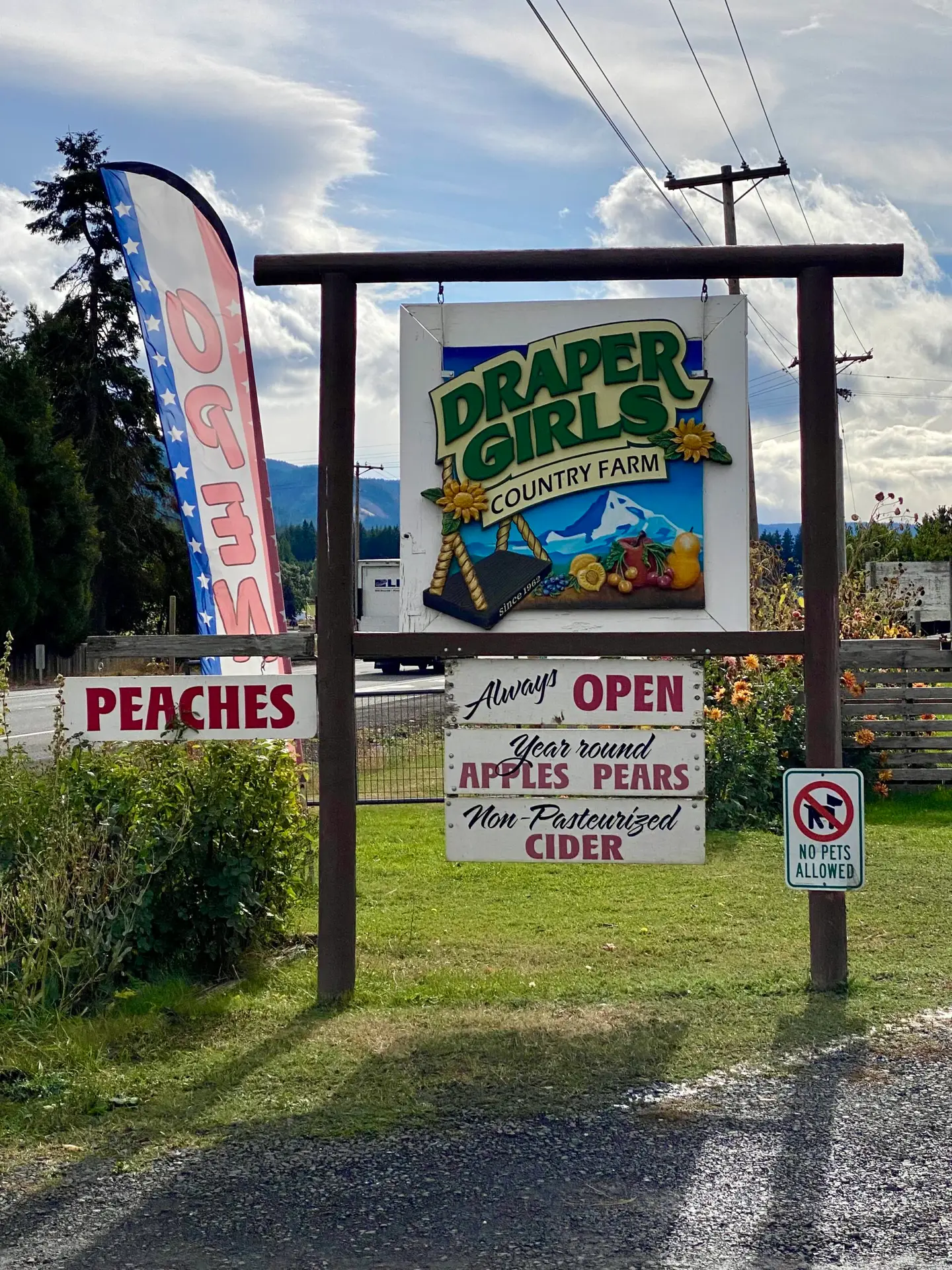 I have two friends in the Portland area, John and Katie, who had been to Multnomah before but were equally excited about exploring the waterfall. To make the most of the day, I set off early in the morning to give myself plenty of time for a scenic drive with a few stops before rendezvousing with them. Seeking travel advice, I had consulted with my coworkers, and one of their recommendations led me to the enticing route known as the Fruit Loop. The Fruit Loop is in Oregon’s Hood River Valley, and it is a scenic 35-mile driving route that offers a captivating journey through lush orchards, vineyards, and picturesque countryside, all framed by the stunning backdrop of Mt. Hood, Along the way, the loop provides opportunities to pick your own