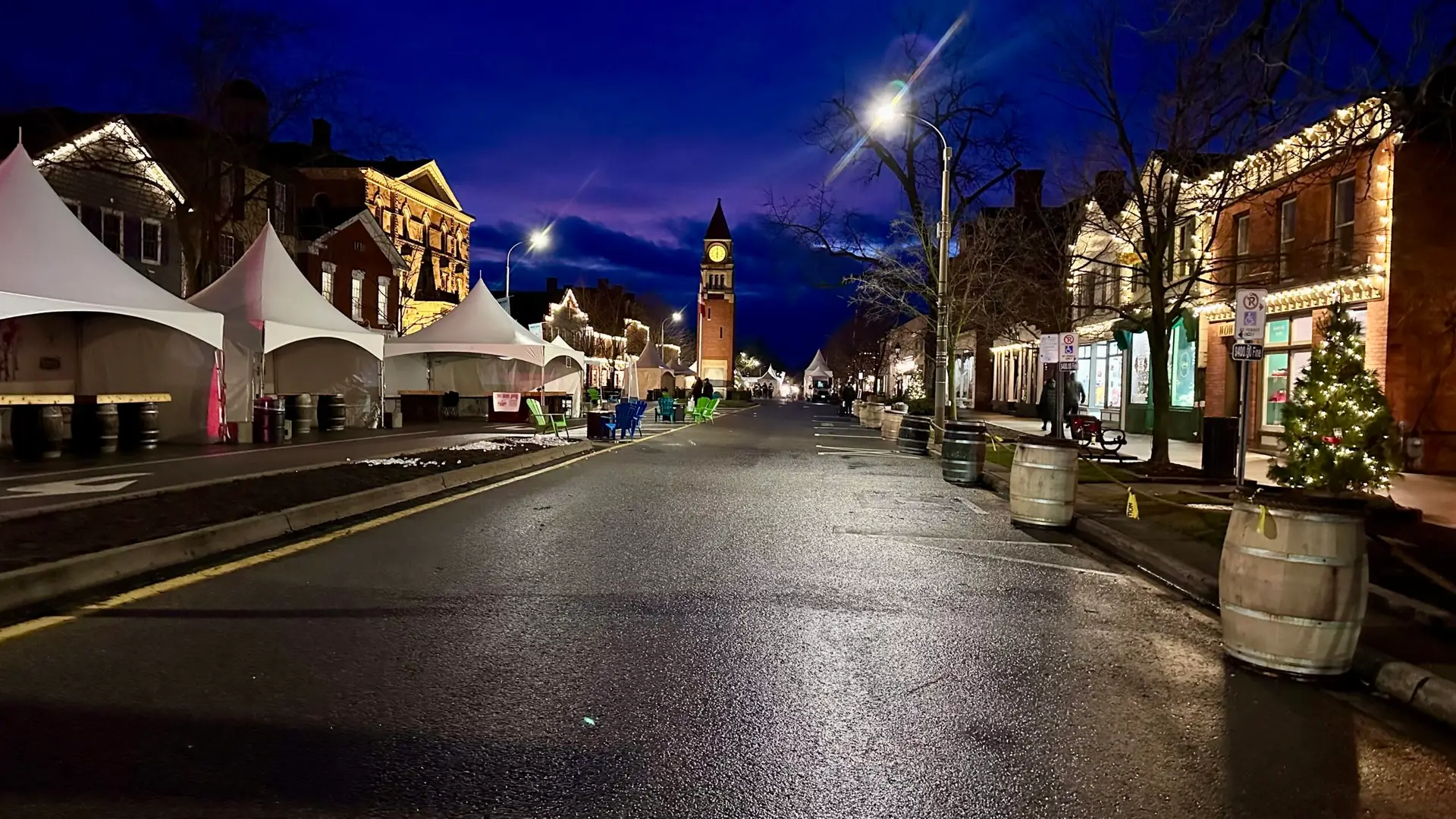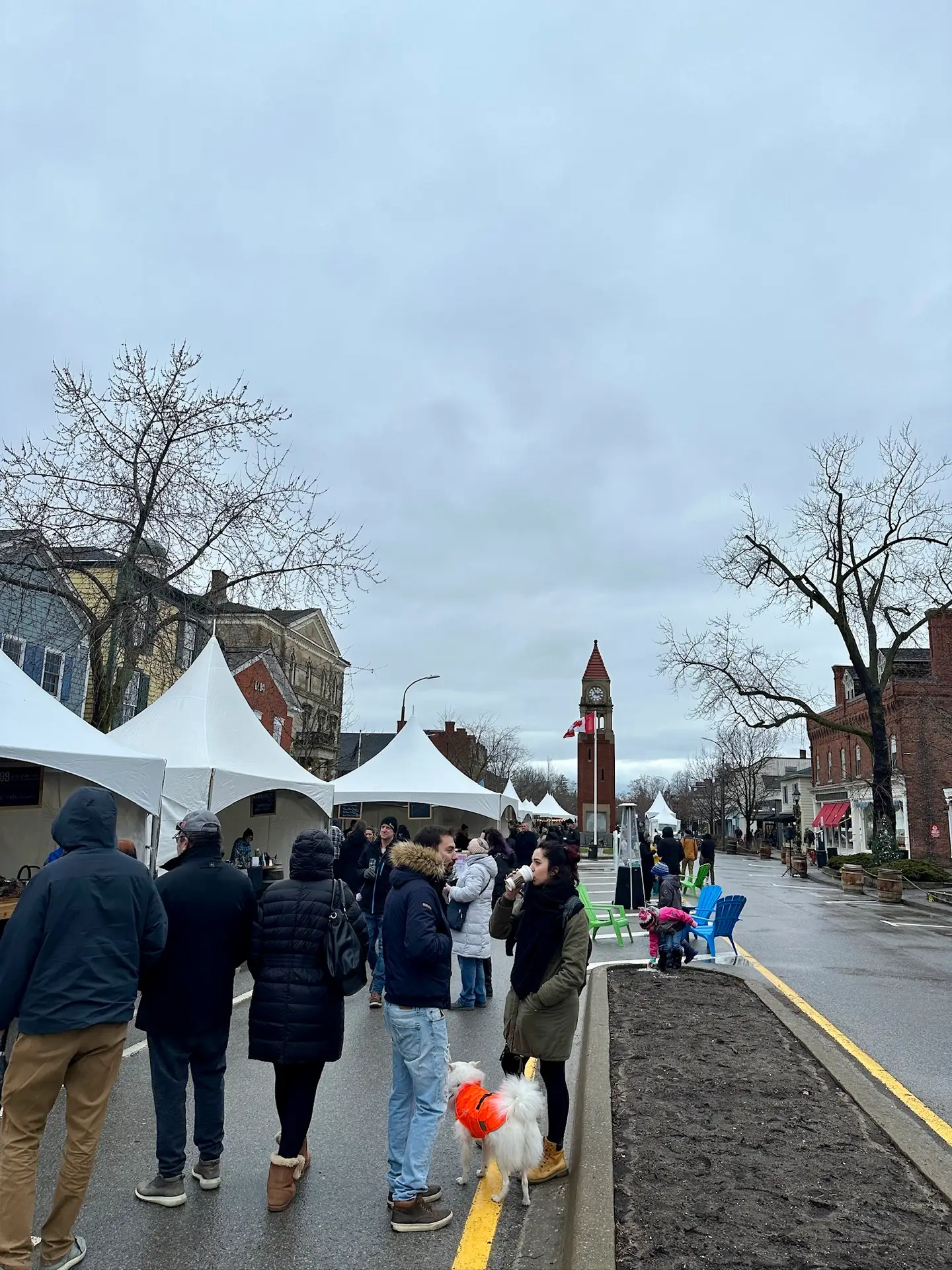 The Icewine Festival in NOTL is an annual festival that typically spans several weekends in January. This popular event invites visitors to explore participating wineries, where they can sample a diverse selection of ice wines showcasing the unique terroir and grape varieties of the area. Icewine, also known as Eiswein or vin de glace, is a dessert wine made from grapes that have naturally frozen on the vine. This labor-intensive process involves leaving the grapes on the vine until they freeze, usually after the first frost. The grapes are then harvested and pressed while still frozen, resulting in a small yield of highly concentrated juice rich in sugars, acidity, and flavors. Icewine is prized for its intense sweetness balanced by high acidity, offering a luscious and refreshing taste with notes of tropical fruits, peach, apricot, and honey. Icewine is typically served chilled and pairs well with desserts like cheesecake or fruit tarts, making it a luxurious and special treat for wine enthusiasts. That being said, we found icewine to be so sweet that we could hardly finish a glass, let alone pair it with dessert! Nonetheless, with live entertainment adding to the festive atmosphere, the Icewine Festival, along with a little exploration of NOTL, provided a memorable and delicious experience.