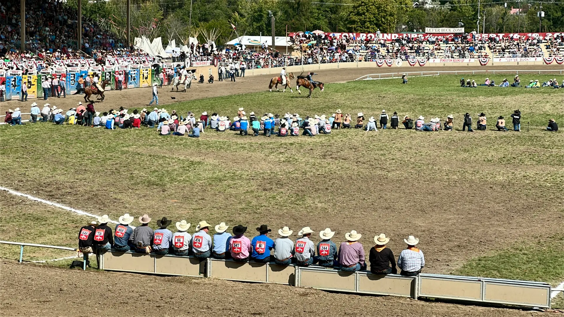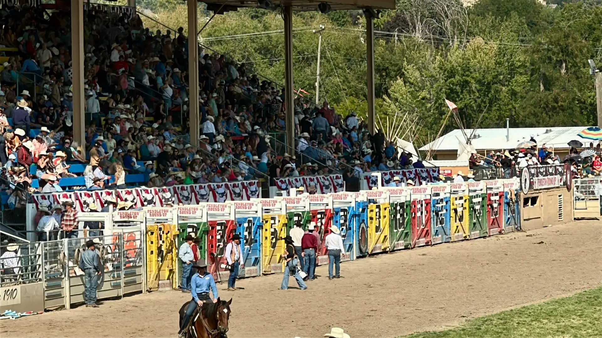 Being in the stands at the Pendleton Round-Up on Saturday was the highlight of my week. The Round-Up arena is legendary—not only is it one of the largest outdoor rodeo arenas in the world, but it also has that old-school, rough-and-ready feel that connects you directly to rodeo’s roots. From bronc riding to barrel racing, every event had me on the edge of my seat. But my absolute favorite was the Indian Relay Races. If you’ve never seen one, picture riders leaping from horse to horse at full speed—it’s chaotic, wild, and deeply rooted in Native tradition. These races have been part of the Round-Up since the early days, and the skill, athleticism, and horsemanship of the riders is nothing short of mind-blowing.
