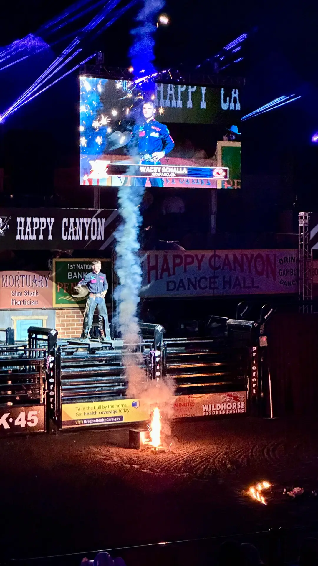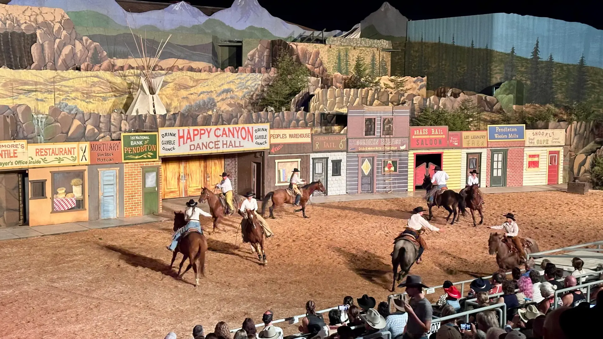 Later that evening, I checked out the Main Street Cowboys downtown before heading back to the Happy Canyon Night Show. This performance is unique to Pendleton—part Wild West show, part historical pageant, and part celebration of Native heritage. Usually, it includes a staged wedding, but the night I attended was extraordinary. The wedding wasn’t an act at all—it was real.