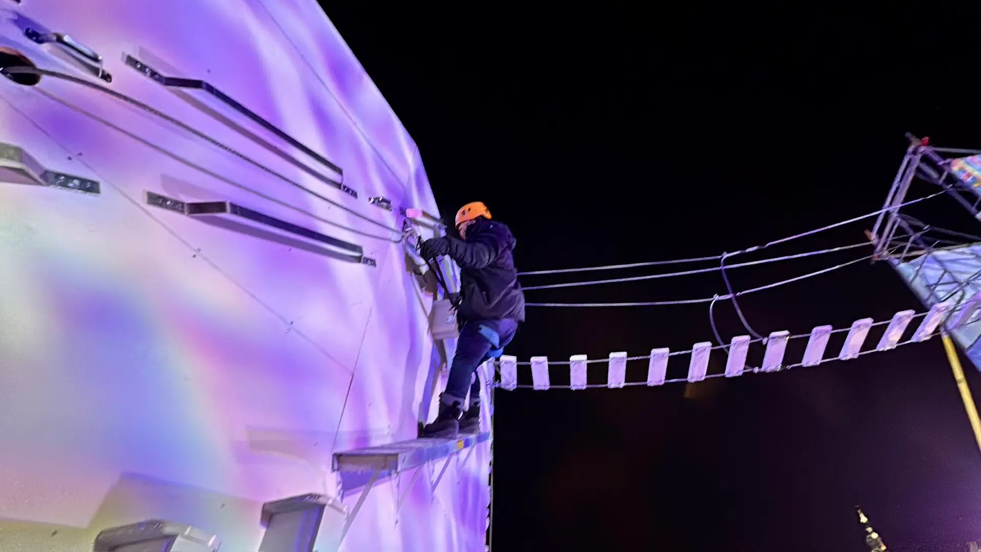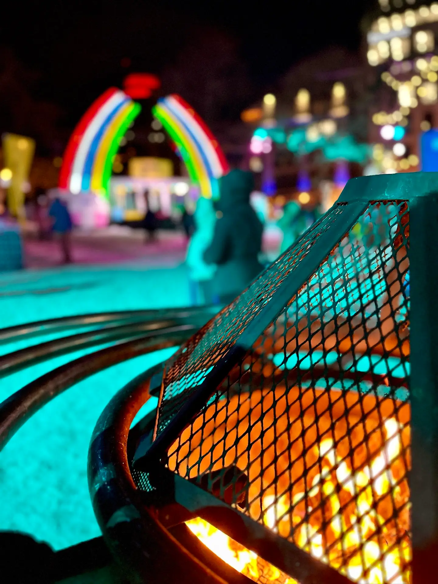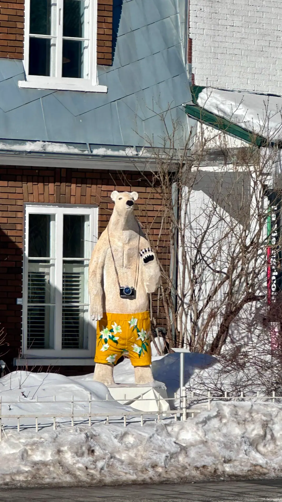 At the heart of the Winter Carnaval lies a rich tapestry of activities and events that showcase the unique spirit and heritage of Quebecois culture. Despite our eager participation in numerous activities, the depth and breadth of the event left us feeling as though we had barely skimmed its surface. Our first day was a sensory feast, as we were entranced by all of the ice sculptures scattered around the city, each crafted with meticulous precision. Our exploration led us to a toboggan ride, where the crisp air buzzed with anticipation as we waited patiently in line for this unique ride. As night approached, we were swept away by the carnival’s nighttime parade – an extravaganza of choreographed performances, large-scale moving animations, and mesmerizing music and light shows. From acrobats jumping on trampolines to human candlesticks, the parade ignited both our senses and our imaginations, leaving an indelible imprint on our memories. Following the parade, we ventured into one of the carnival setups that featured a large climbing wall shaped like a polar bear that you could even ice climb on, a tube slide, tri-skis, mini-golf with hockey sticks, a ball pit, live music, a fire pit, and at every carnival event site – a bar.