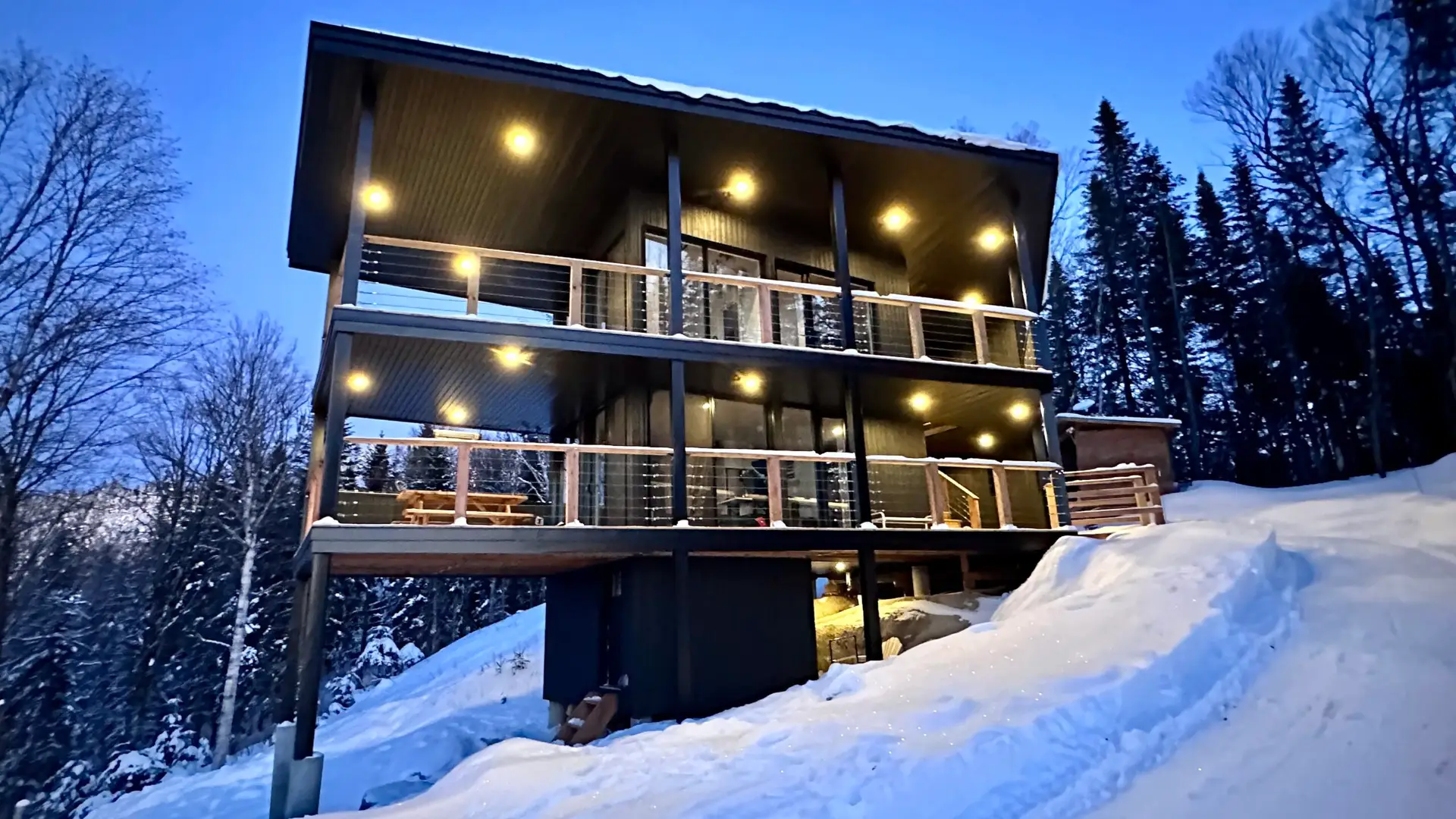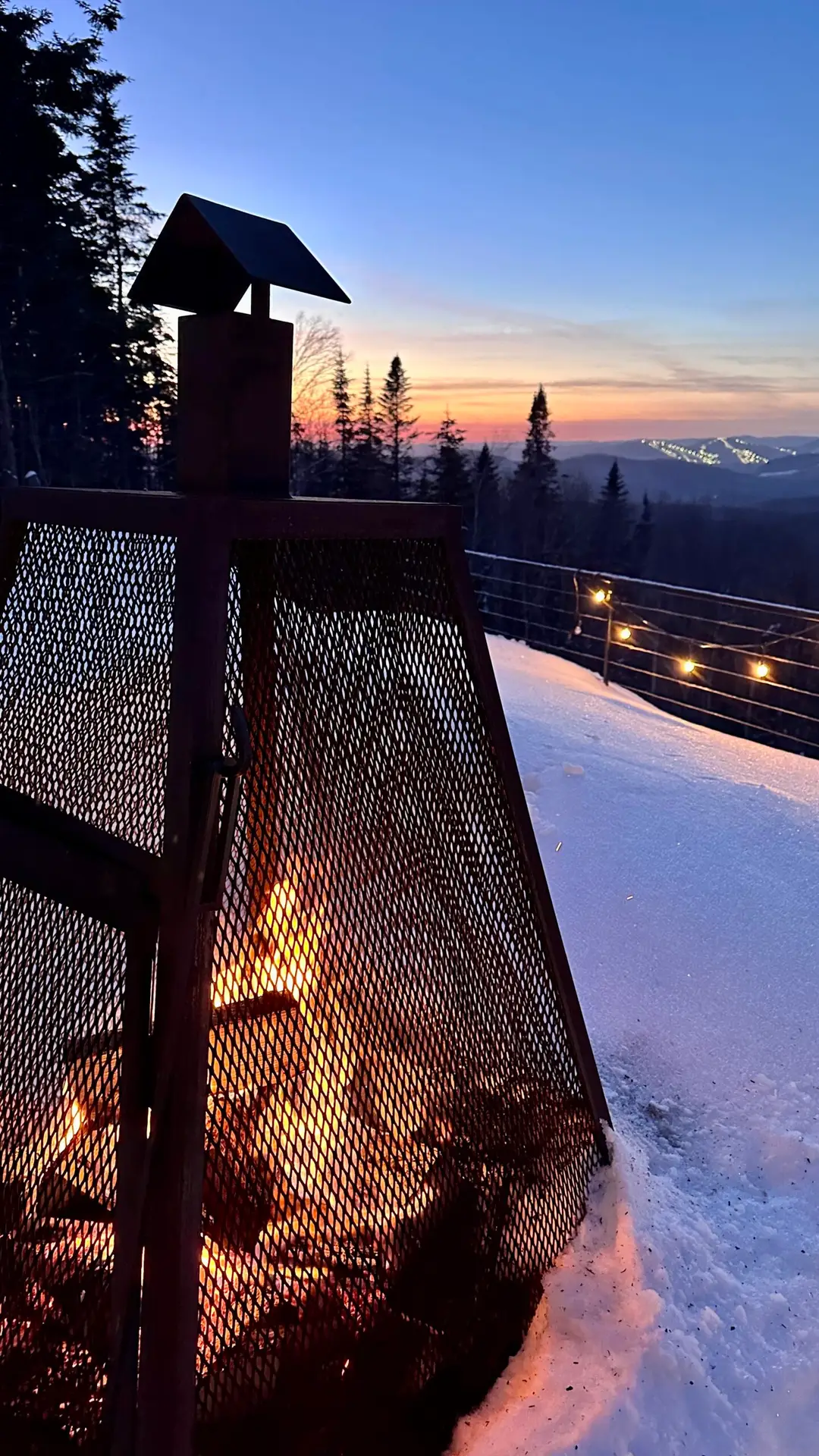 After our first night in Quebec City, we stayed at an incredible Airbnb 30 minutes outside of the city in Lac Beauport. Our Airbnb was called “Tricera,” a name given to it by its owner who grew up with a love for dinosaurs. Tricera was built on an immovable rock from prehistoric times, which also contributed to its name. This Airbnb surpassed expectations by a longshot! A tiny home in size, it came with everything we needed, including a firepit. Apparently, most guests don’t use the firepit in winter, but our host went above and beyond to plow the snow around it for us so that we could use it. We spent our final evening in Quebec simply enjoying the sunset over the snow-covered hills, staying warm by the fire, and admiring the clear night sky at Tricera. You couldn’t ask for a more relaxing place to stay!