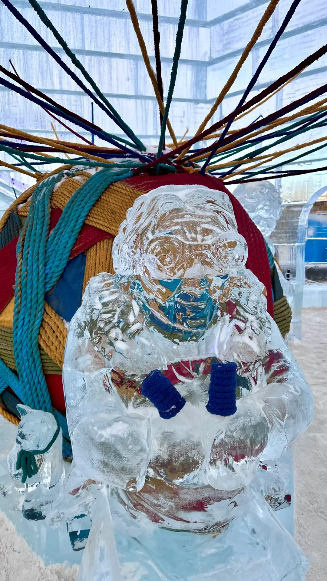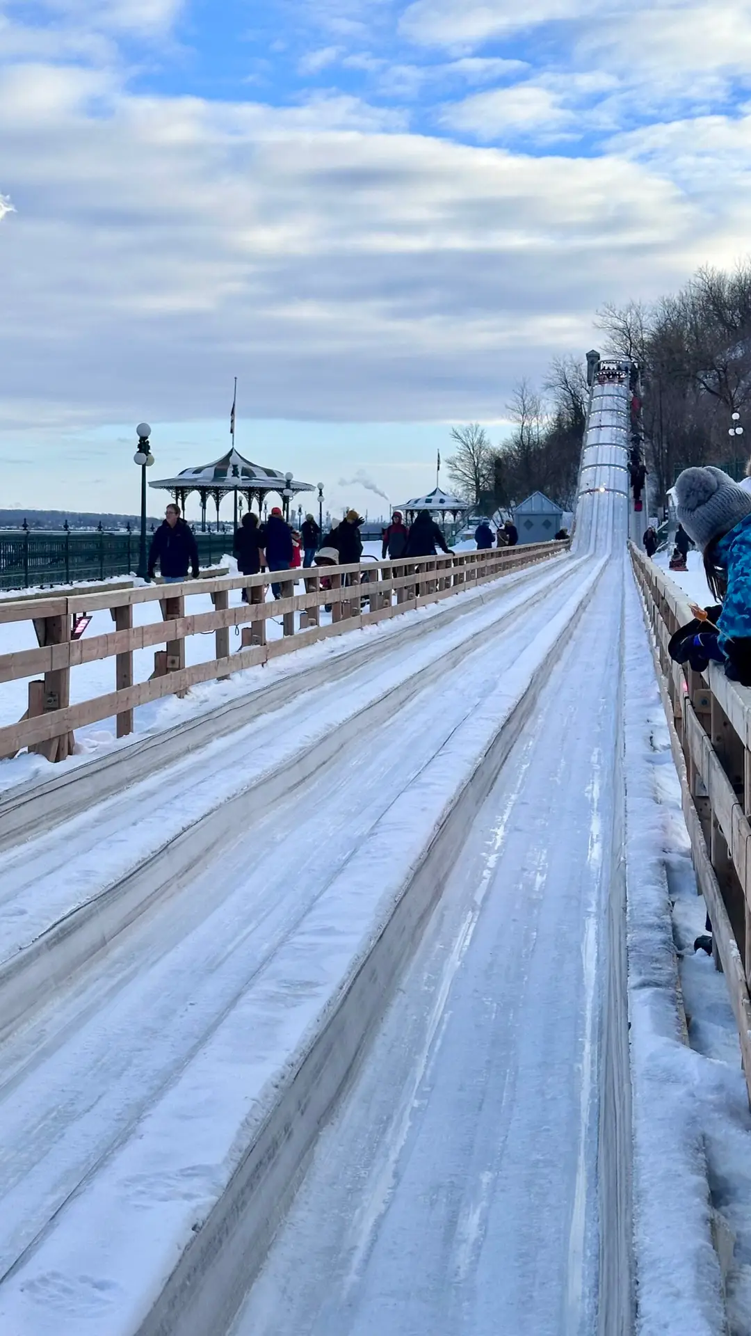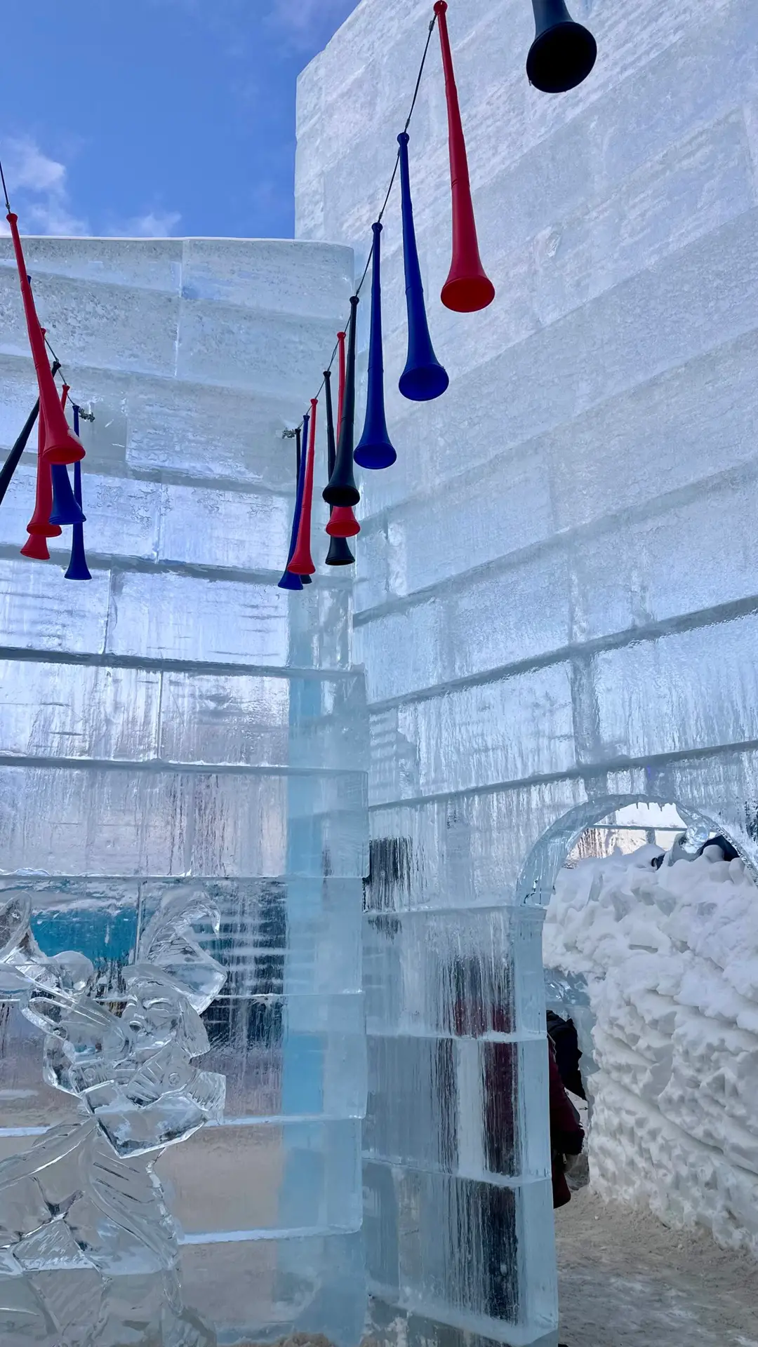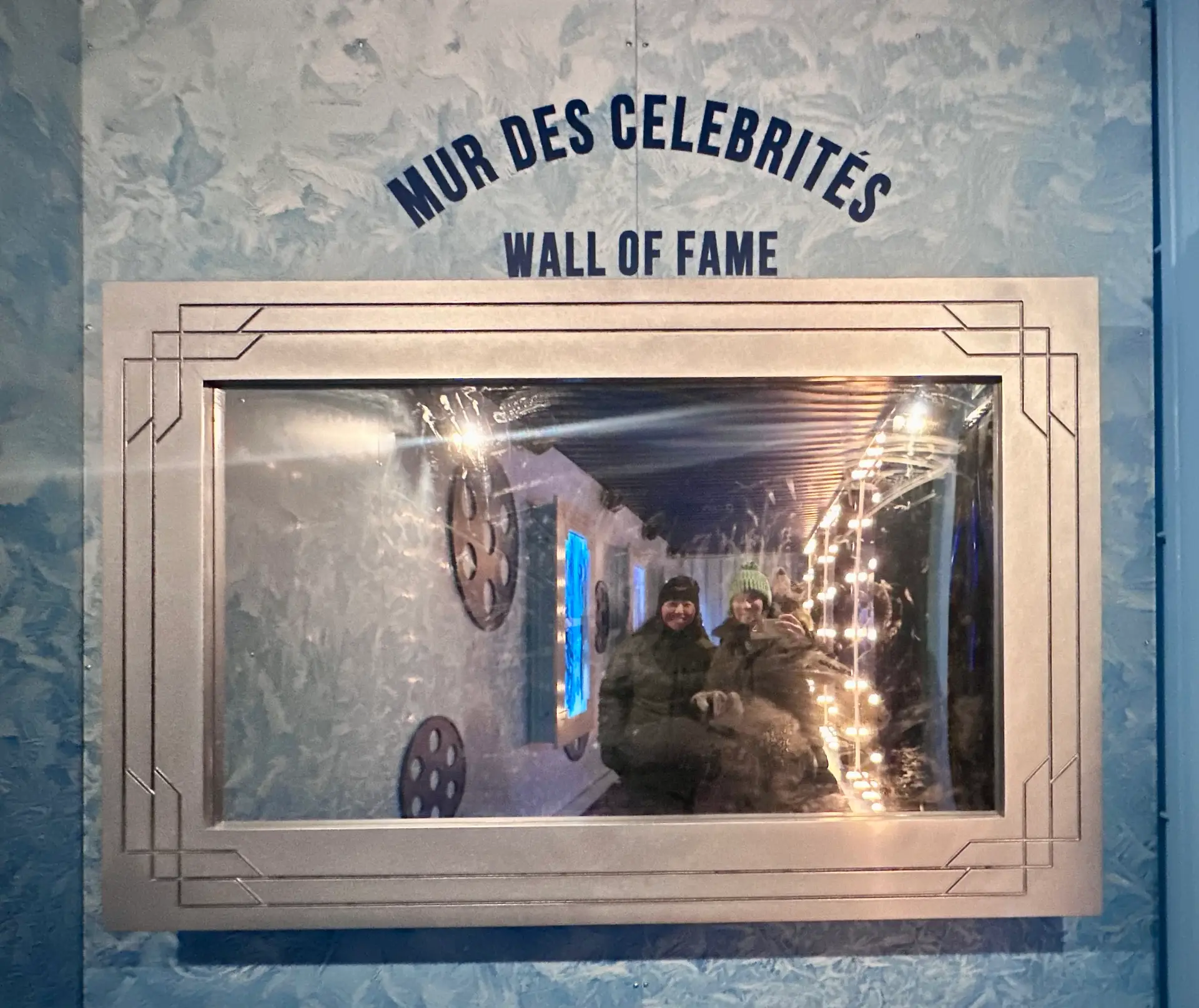 Our final day in Quebec, as serendipity would have it, we stumbled upon the ice castle that we had been looking for as well as two other exciting carnival areas. Bonhamme’s castle was a frozen splendor! His icy castle has been a part of the Winter Carnaval since 1954. Over the course of five weeks, a staggering 600,00 pounds of snow and ice are meticulously sculpted into an architectural marvel that is as fleeting as it is inspiring; it is demolished in a single day at the end of Carnaval. The architecture of the castle changes with the theme of the carnival every year. Another carnival sight featured an igloo and other ice sculptures, complete with artists actively working on bringing more frozen creations to life. Nearby, another inviting ice bar beckoned. At this bar, we were introduced to the delightful Maple Cream Whiskey, unfortunately reserved exclusively for Quebecois palates at this time. A third realm of icy delight this day offered even more Quebec entertainment – a comedy show, albeit in French, an ice slide, a zipline, a silent disco, live music, and yet another ice bar.