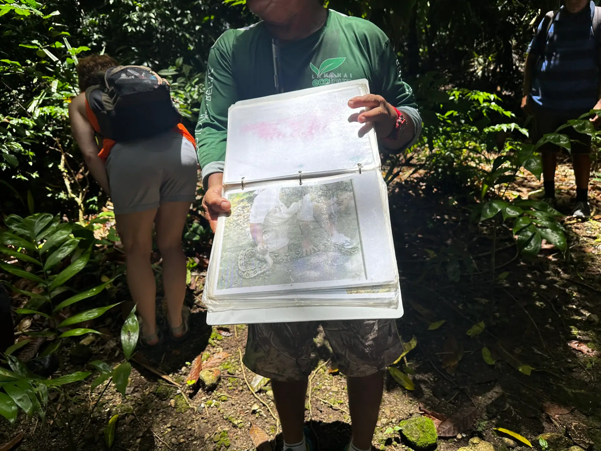 Shortly into the bus ride, Leon, with great enthusiasm, plucked a leaf from a dye tree and passed it around the bus. One by one, we tore off small pieces, rubbed them between our fingers, and marveled as they transformed into shades of red. This leaf had been used by the Mayan people to paint their artifacts, revealing a piece of Belizean history right before our eyes.