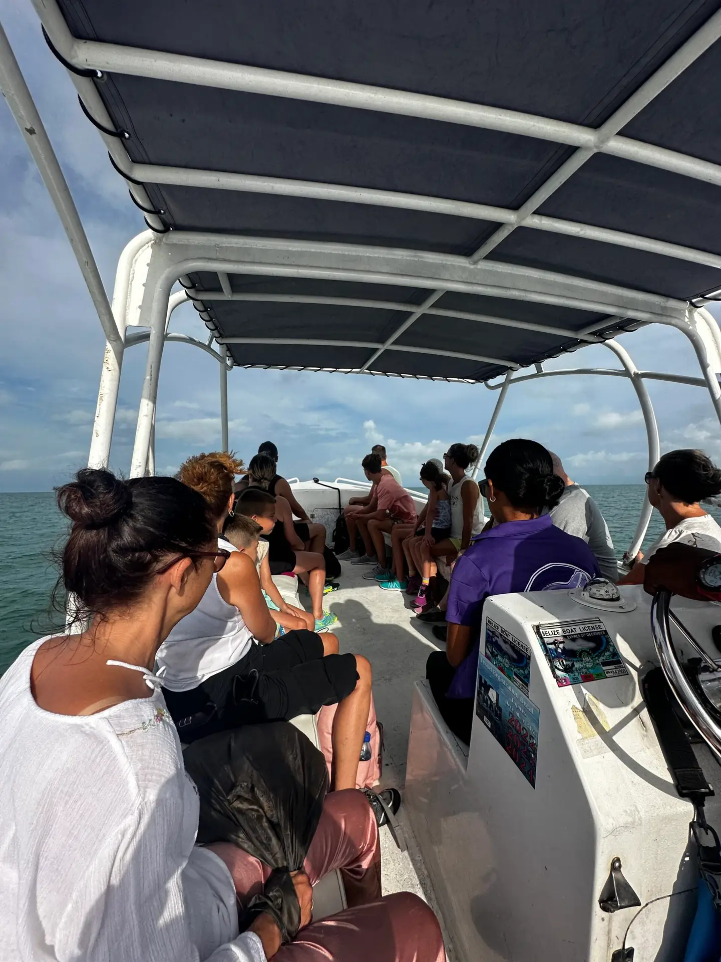 Once our entire group was on board, we began our jungle adventure. We began on a scenic cruise over the crystal waters of the Caribbean Sea, and our excitement rose when we caught a glimpse of a playful dolphin pod. Shortly thereafter, we reached the Northern River, a unique waterway characterized by its brackish composition – a blend of seawater and fresh water – and lined with enchanting mangrove trees. This leg of the journey lasted approximately an hour, but it was more than just a boat ride. We were treated to a sumptuous breakfast served right on the river, featuring a homemade breakfast burrito, freshly-baked banana bread (skillfully crafted by Daisy), fresh watermelon, and refreshing orange juice. Leon, our guide, also shared a wealth of knowledge about many things Belize. He informed us that Belize is home to over 300 islands, and its electricity comes all the way from Mexico. The national animal of Belize is the tapir, while the black orchid graces the nation as its official flower. The mighty mohagany stands as the national tree, and the vibrant toucan proudly claims its role as the national bird.