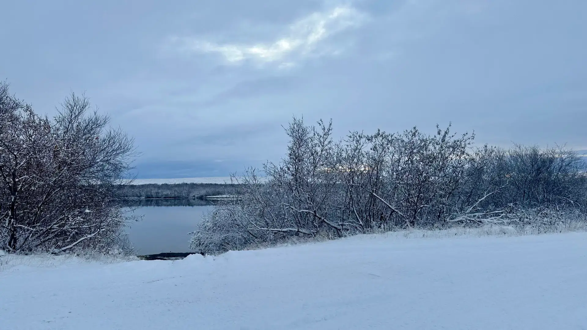 The weather had shifted since our last trip—it was colder, and the days were much shorter. When we left at 8 a.m., it was still pitch dark. As we flew, I spotted the glow of Noatak and Deering’s airport lights marking their distant locations. By the time we landed in Buckland after the short flight, the sky was still dark, but the ground greeted us with a fresh, beautiful 4-5 inches of snow that had fallen the day before—a winter wonderland, much to my delight.
