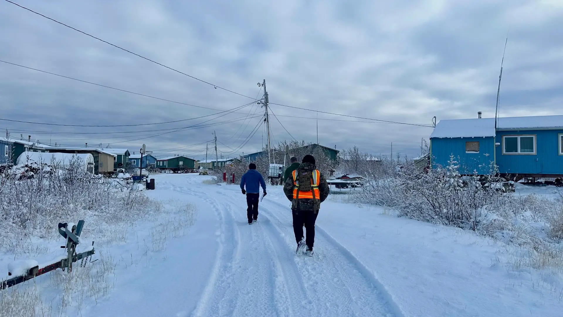 The highlight of the day for me, once again, was the kids. One boy wanted to play “catch the candy bar” with me—his favorite was Hershey’s with almonds. Another little girl had just celebrated her 8th birthday, and her decorations were still up. A younger boy kept popping out from behind a snowbank, playing peek-a-boo, laughing every time I saw him. Then there was a group of teens gathering food and water from the BBQ to take to the elders. One girl spilled her parents’ tea and casually told us her dad had run off to Kotzebue, then to Anchorage, and back again. They seemed to have a rather unhealthy relationship, and she insisted she wouldn’t follow in her parents’ footsteps because, as she put it, “they’re cousins!”—an unexpected confession that left us momentarily speechless.