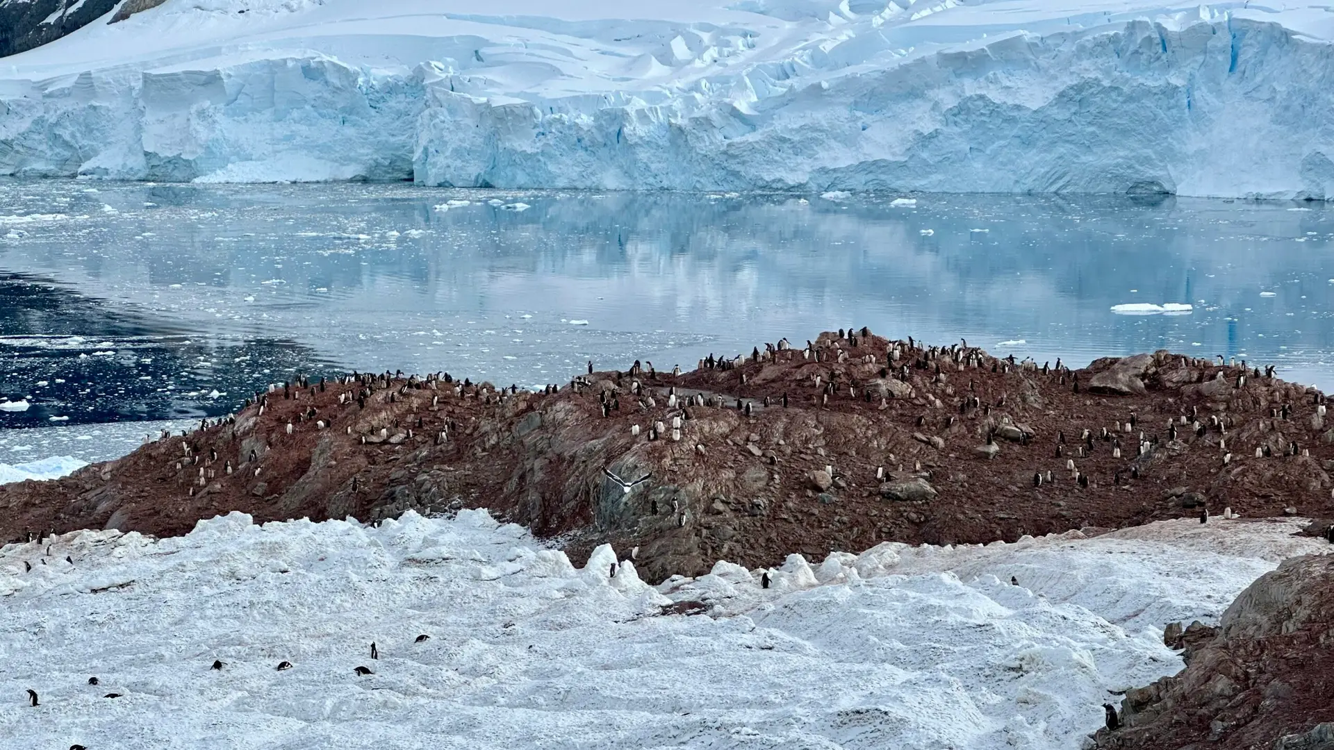 After plenty of time observing the penguins, we climbed back into the zodiac and took off to explore the nearby coastline. As we cruised past snow-covered ridges, I noticed what looked like rows of tiny black dots on a distant slope. I asked aloud, “What are all those black specks?” and my boatmates turned to look. We steered in that direction and discovered an entire hillside crawling with penguins—hundreds of them. It was one of those quiet, proud moments. I may not be a wildlife expert, but I was feeling pretty sharp that morning.