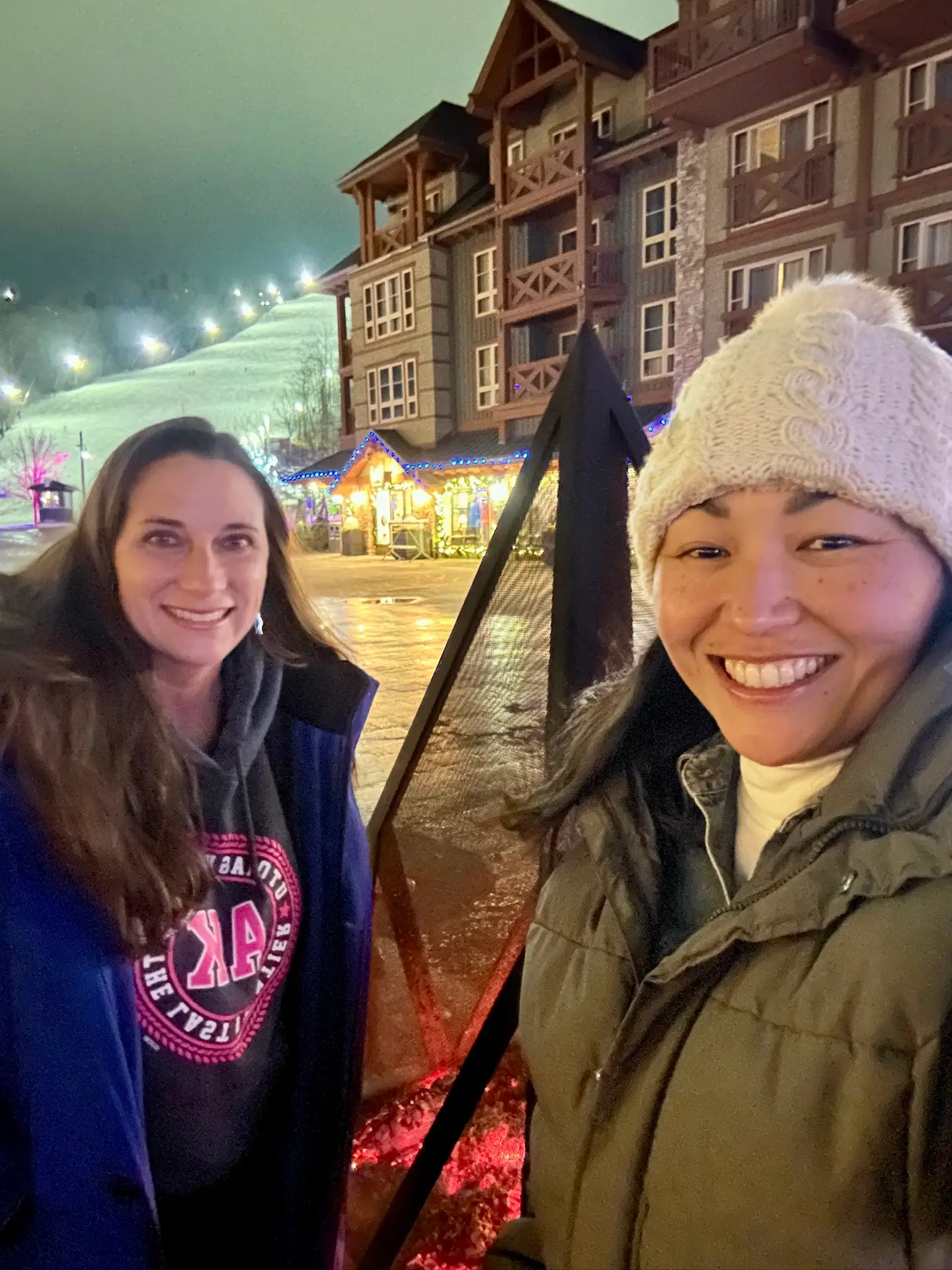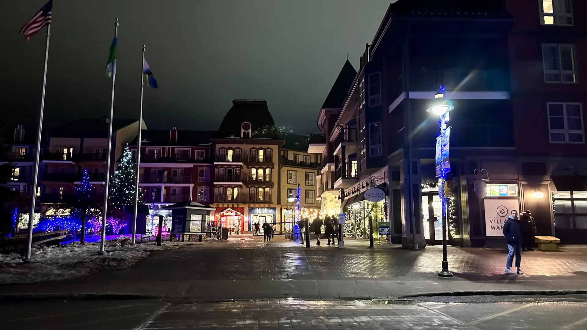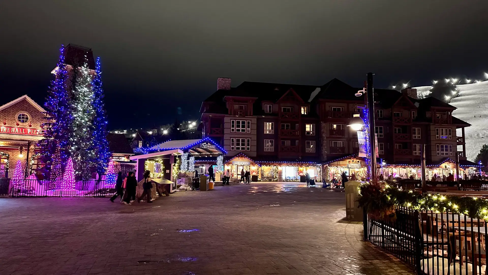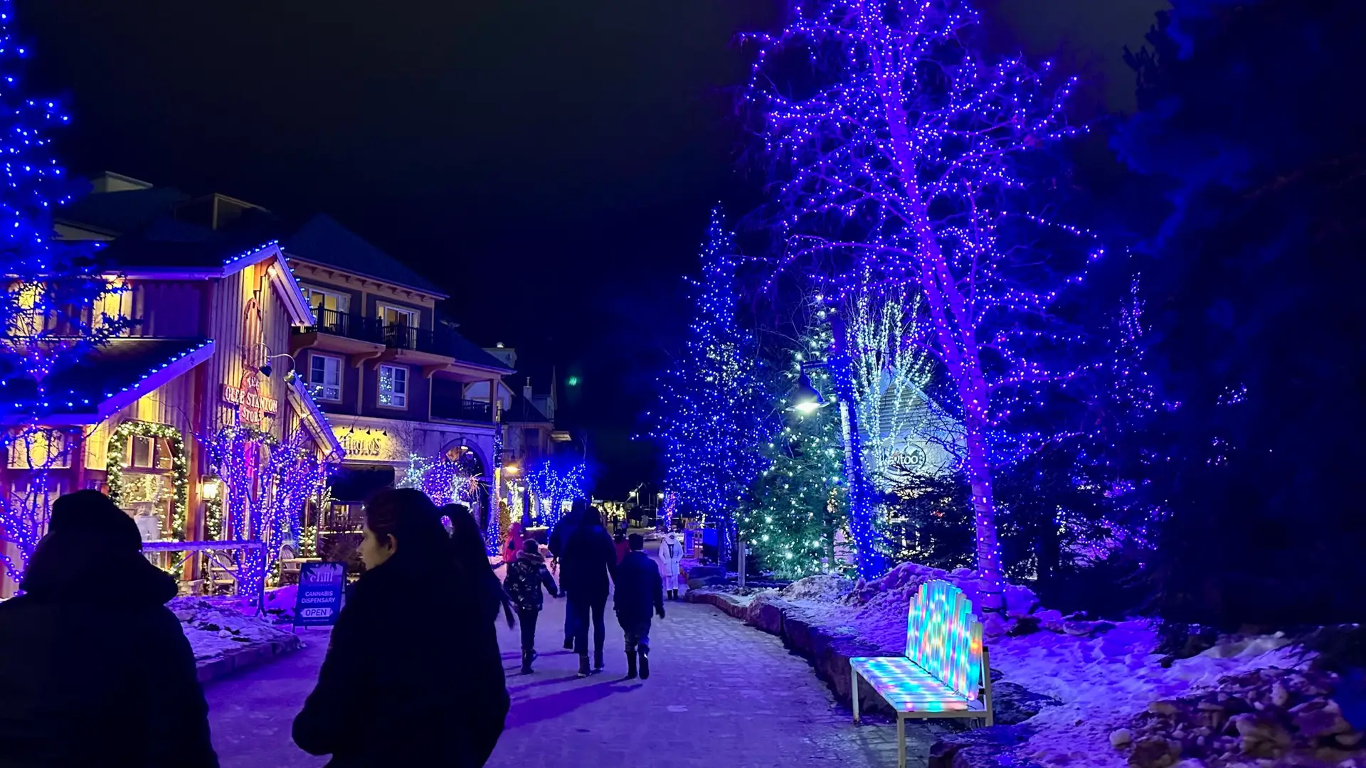 Despite arriving a little later than planned, we were immediately enchanted by the picturesque Blue Mountain Village, where skiers glided downhill under the night sky. Blue Mountain Village was gorgeous, and we were yet again captivated by Canadian beauty. We strolled through the annual “Bluemination” display, admiring the dazzling lights and charming installations, especially the polar bears adrift on the water.