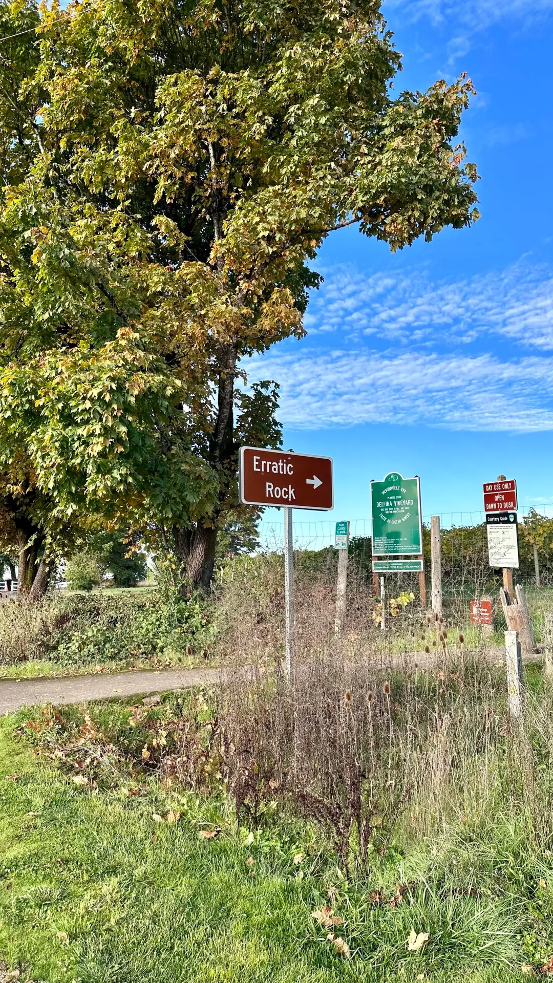 Next on my itinerary was a visit to Erratic Rock, an imposing glacial rock with profound geological significance. This massive boulder, unlike the surrounding rock formations, serves as a testament to the ancient sheets’ forceful movements during the last Ice Age. Its presence holds significant geological importance, offering insights into the region’s part transformations. Accessible via a short uphill walk from the roadside, Erratic Rock is well-marked with informative signage, offering insight to the region’s glacial history. Alongside you are fields of vineyards that litter this part of the state, coercing you to refresh with a glass of vino after your walk. The site is maintained with conservation in mind, and this unique geological wonder is an easy stop for all who appreciate the Earth’s fascinating history and the power of glaciation.