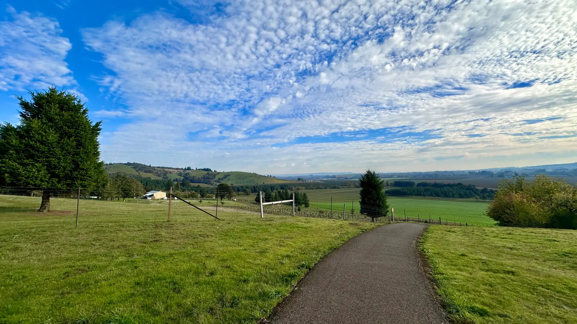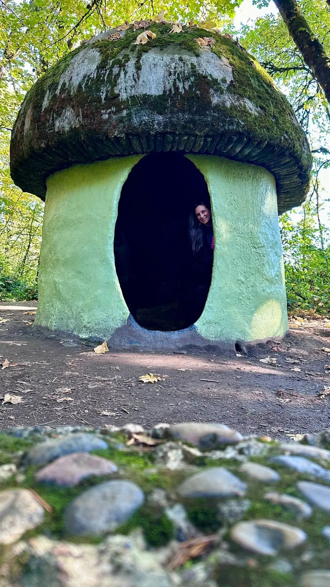 Continuing my journey, I arrived next at the Galen McBee Airport Park, referred to simply as Airport Park. Nestled near the McMinnville Municipal Airport, this well-maintained park consists of a short trail – 1.1 miles for the large loop – that has several park benches and picnic tables along the way. What truly stood out, however, were the whimsical features added into the park’s design by sculptor Sam Gendusa. The Mushroom House and two moss-covered fountains transformed the trail into a fairy wonderland. Airport Park’s history traces back to WWII when the War Department sought to build an airfield in McMinnville. After a series of transformations, the property was eventually transformed into this 20-acre park.