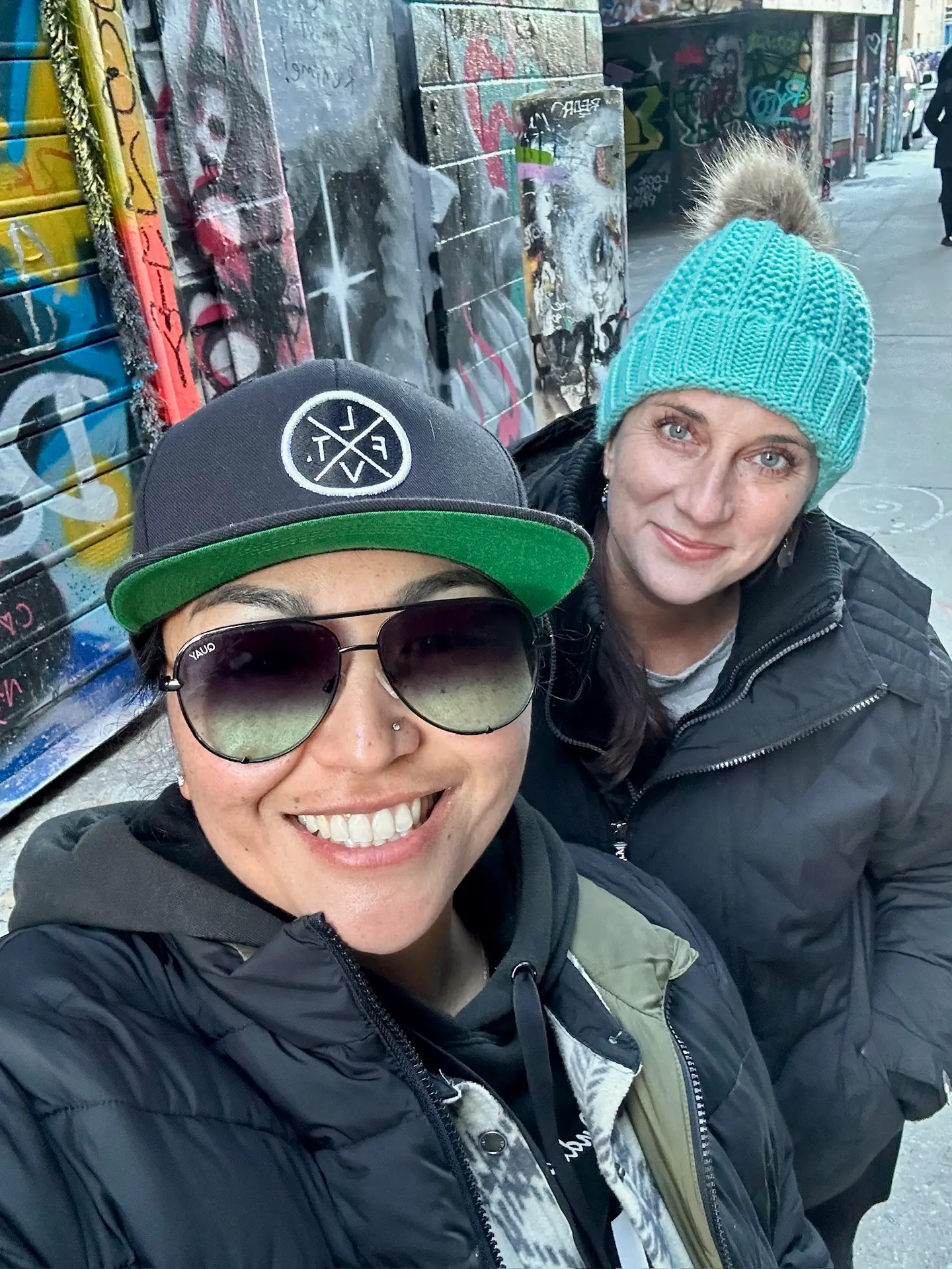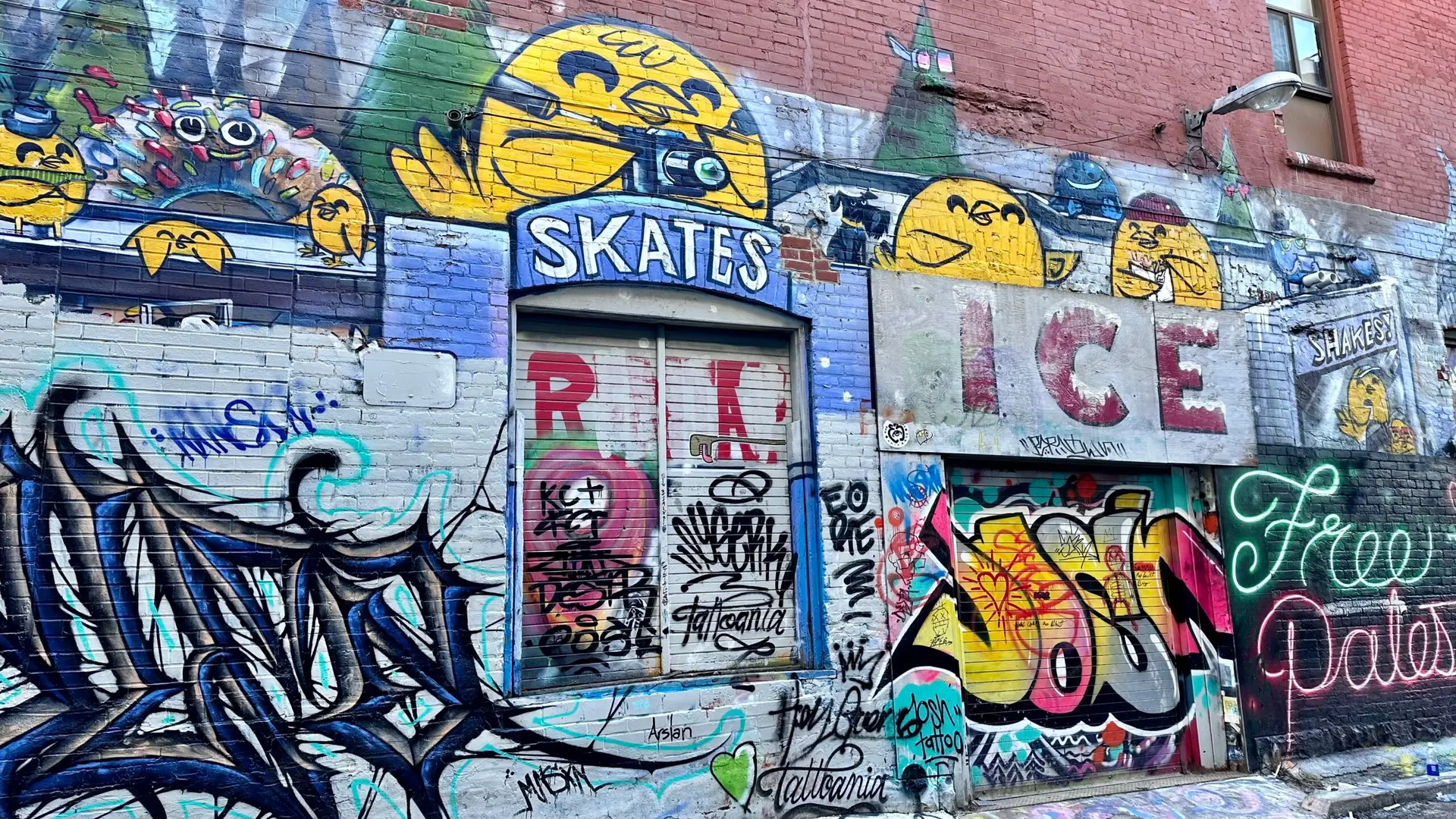 - Graffiti Alley is a famous spot for street art, and definitely a highlight for Tiff. We were pleasantly surprised to find that is actually a stretch of alleys in the Queen Street West neighborhood filled with colorful graffiti and murals. And I mean FILLED! People come here to see the ever-changing artwork and take photos. It’s legal to paint here, so artists often create new pieces, making it an evolving outdoor art gallery. It’s a very cool spot to explore if you’re into urban art and want to see some vibrant and creative expressions.